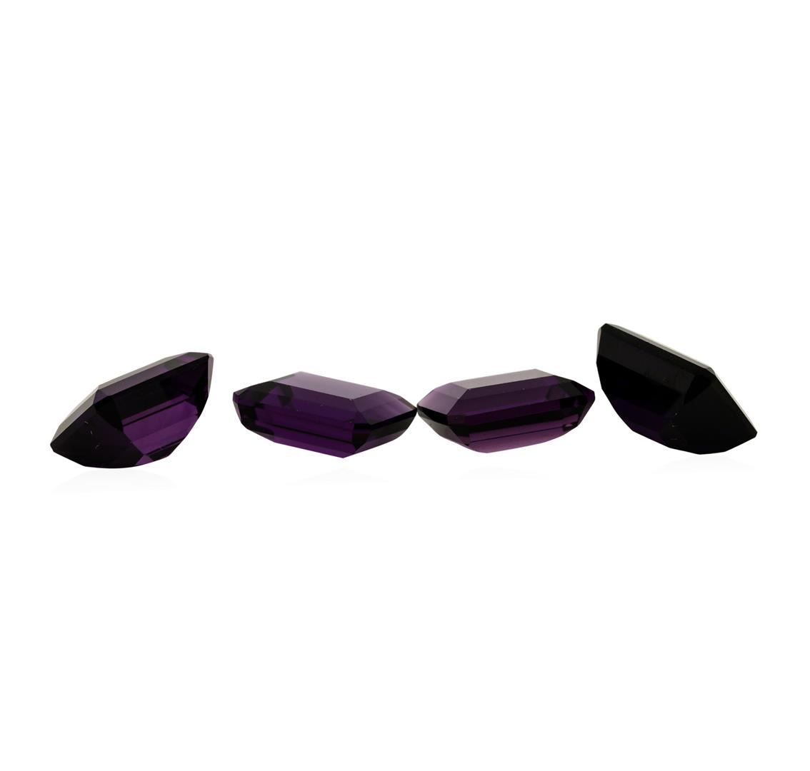 One natural emerald cut amethyst parcel of four with an exact weight of 23.58ctw., clarity is eye clean, purple, medium dark to medium. Gemological Appraisals Services estimates the retail value at $801.72 GAS Appraised.