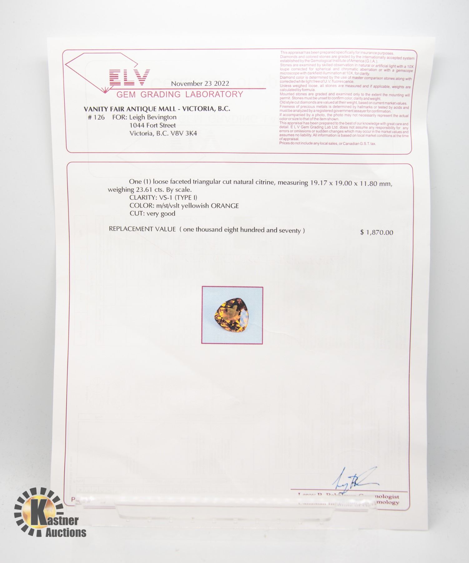 It is the sole responsibility of the purchaser to remove their items within the prescribed time. Kastner Auctions Ltd will NOT provide any delivery or transport of any nature for live auction items.