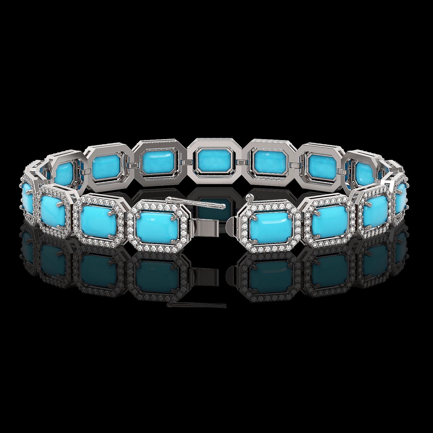 REF-345Y5X - SKU: 46063 ---- 23.66 ctw Turquoise & Diamond Micro Pave Halo Bracelet 10k White Gold