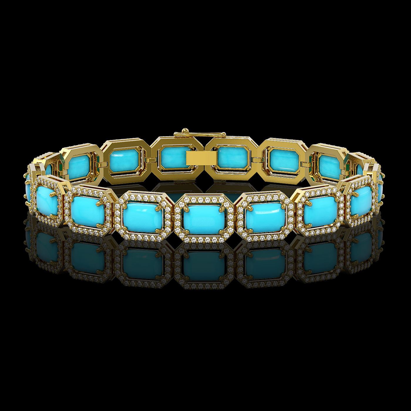 REF-345F5M - SKU: 46065 ---- 23.66 ctw Turquoise & Diamond Micro Pave Halo Bracelet 10k Yellow Gold
