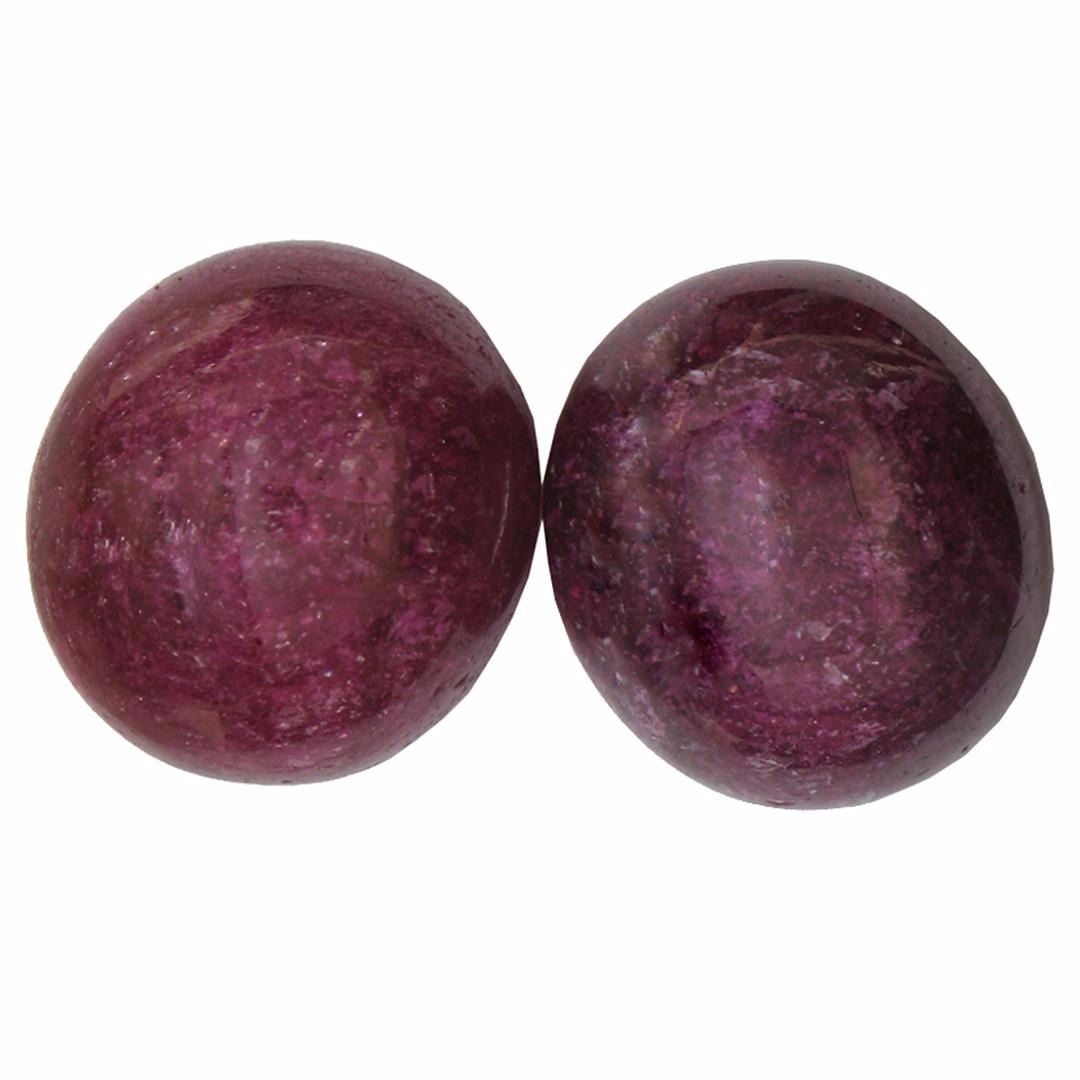 Two oval cabochon cut natural rubies, measuring 13.50 x 12.00 x 6.30mm, exact total weight 23.72ct., clarity is heavily included, type II, dark, very slightly brownish, slightly purplish red color, (GIA slpR 7/3), cut is good. Transmitting light diffusely, opaque. Naturally occurring internal & external characteristics are present. Indications of laboratory high temperature heat treatment, with glass & flux additives. Ruby has a low tolerance to rhodium plating, repolishing the surface, & ultrasonic cleaning. Westfield Appraised at $2,435.00.