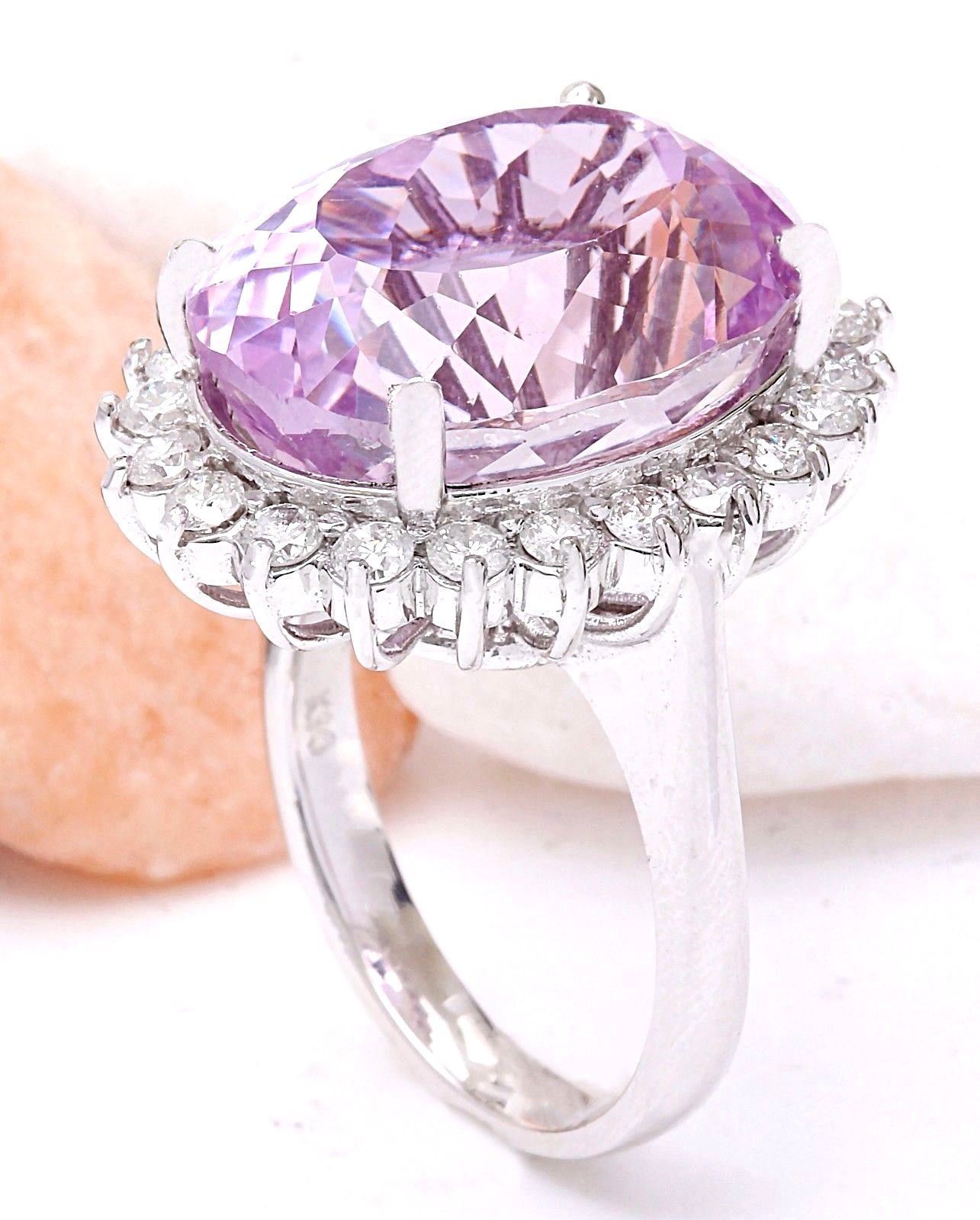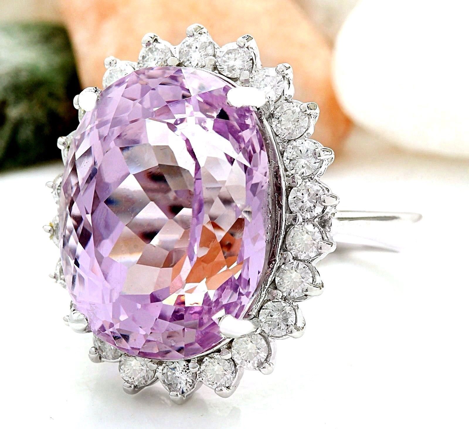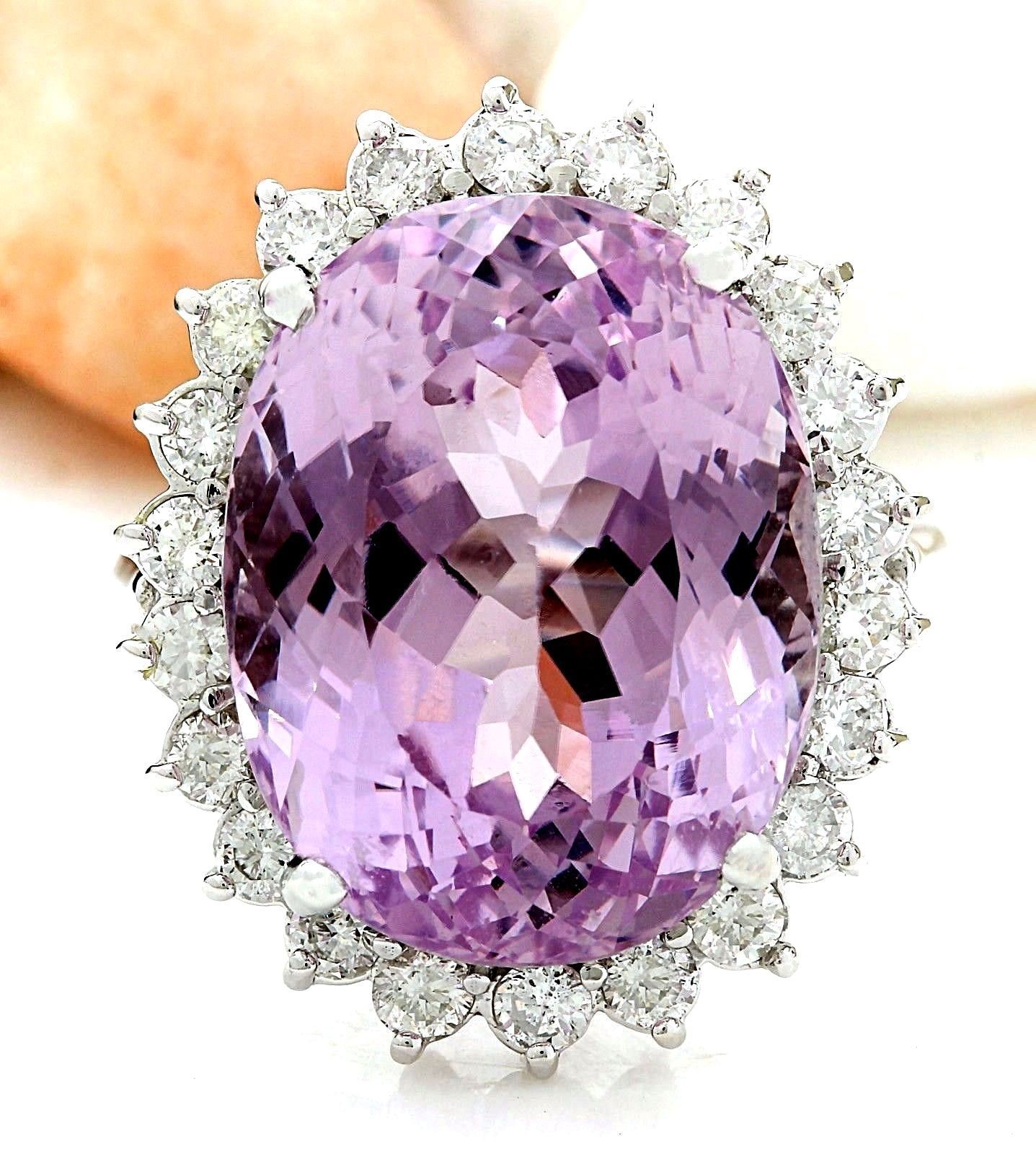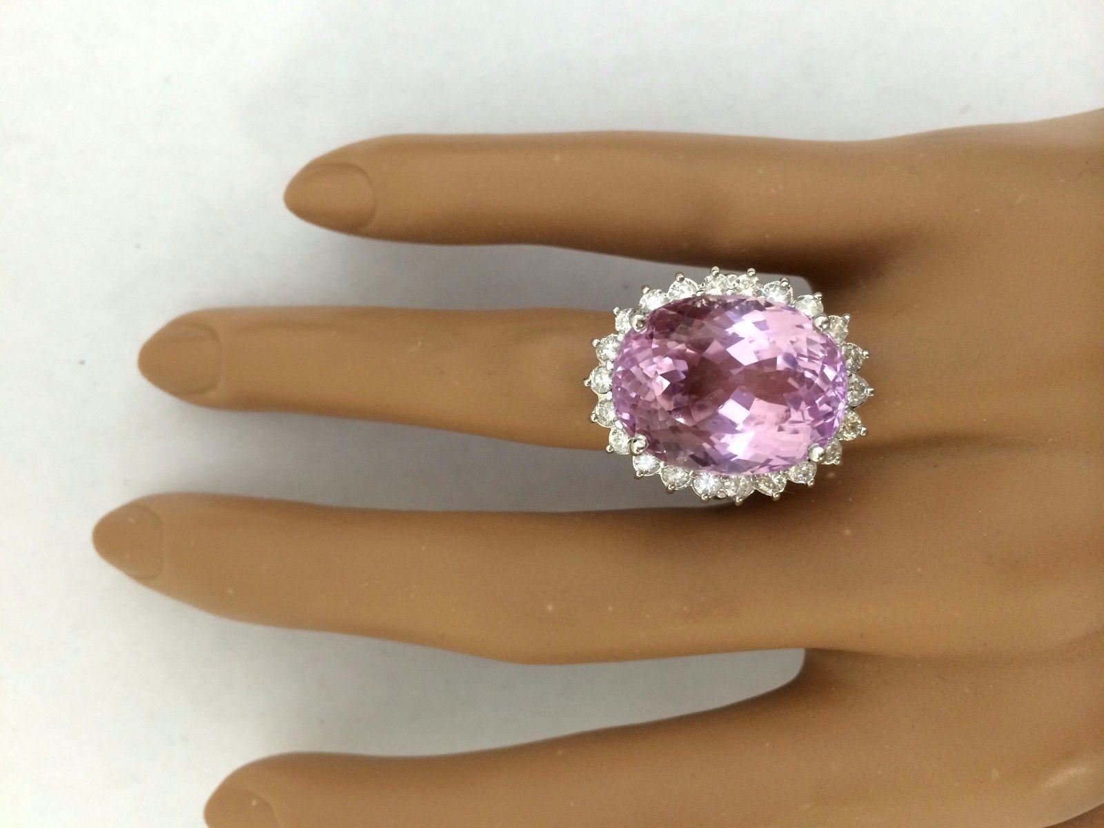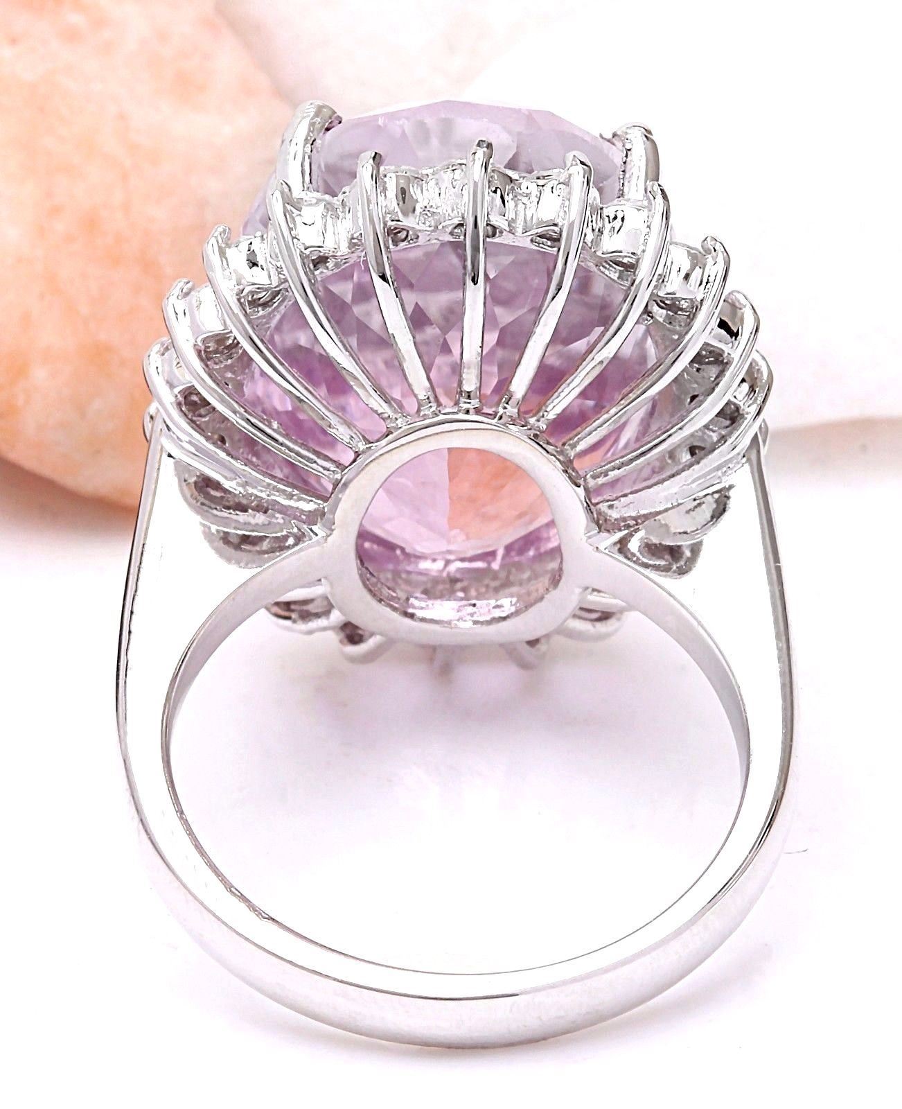 23.73 Carat Natural Kunzite 14K Solid White Gold Diamond Ring