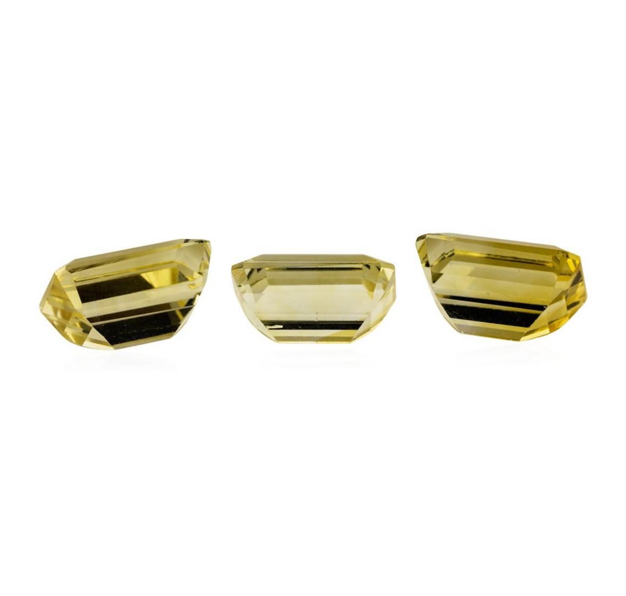 One natural emerald cut citrine quartz parcel of three with an exact weight of 23.73ctw., clarity is eye clean, slightly yellowish orange, medium light. Gemological Appraisals Services estimates the retail value at $711.9 GAS Appraised.