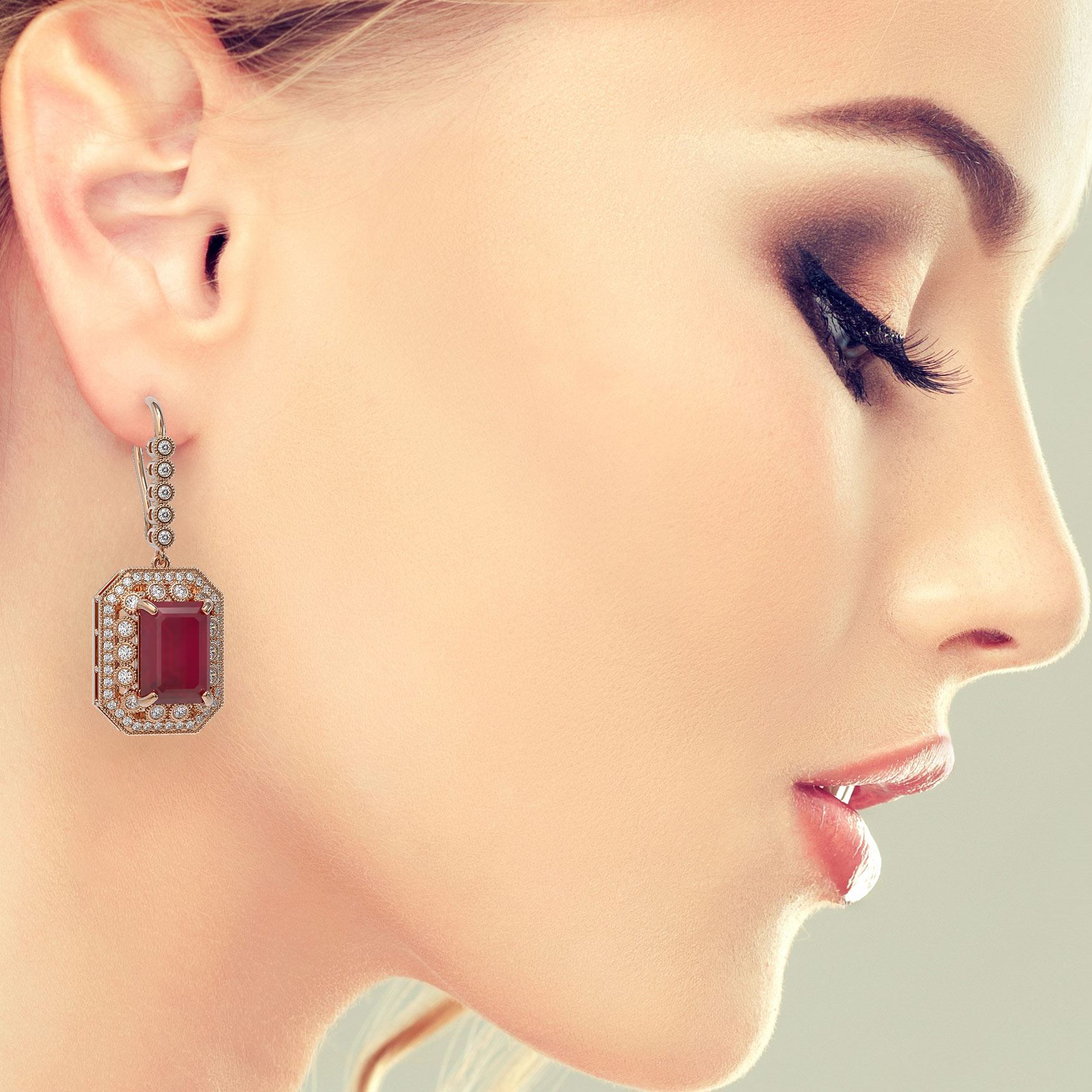 REF-481A6N - SKU: 43524 ---- 23.79 ctw Certified Ruby & Diamond Victorian Earrings 14K Rose Gold