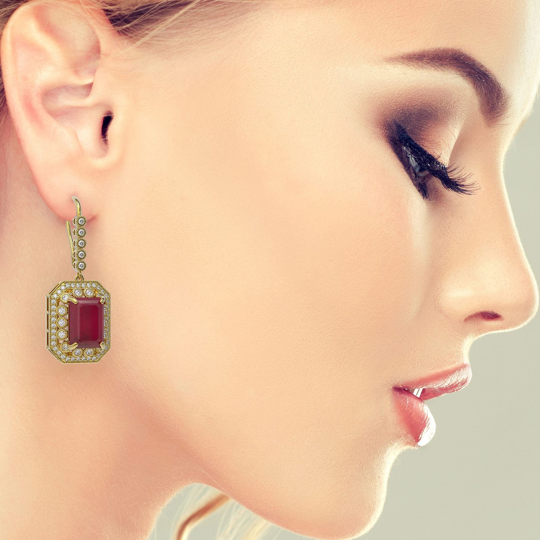SKU: 43525 ---- 23.79 ctw Certified Ruby & Diamond Victorian Earrings 14K Yellow Gold