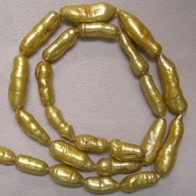 GOLDEN GREEN FRESH WATER PEARL STRING. EACH PEARL MEASURES 23-8 MM APPROX. LENGTH: 16 INCHES
