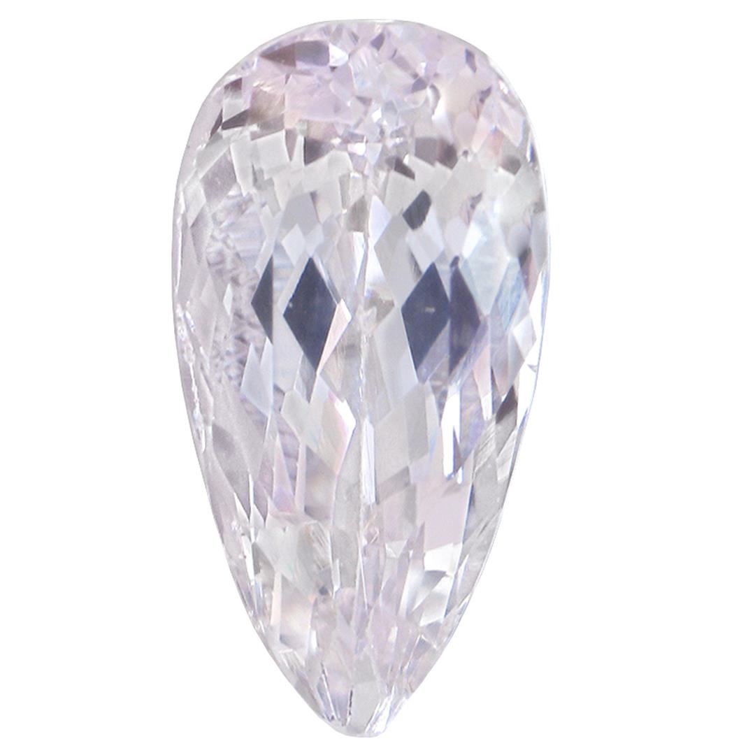 One pear mixed cut natural kunzite, measuring 25.00 x 12.00 x 11.50mm, exact weight 23.82ct., clarity is eye clean, type I, medium light, very slightly grayish, reddish purple color, (GIA rP 4/3), cut is good. Transmitting light with no distortion, transparent. Westfield Appraised at $6,605.00.