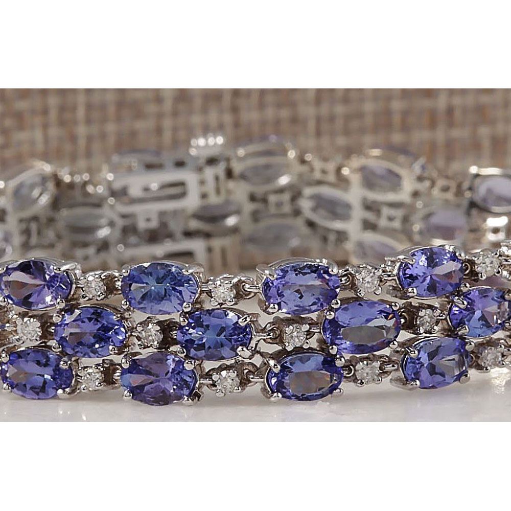 23.85CTW Natural Tanzanite And Diamond Bracelet In 18K Solid White Gold