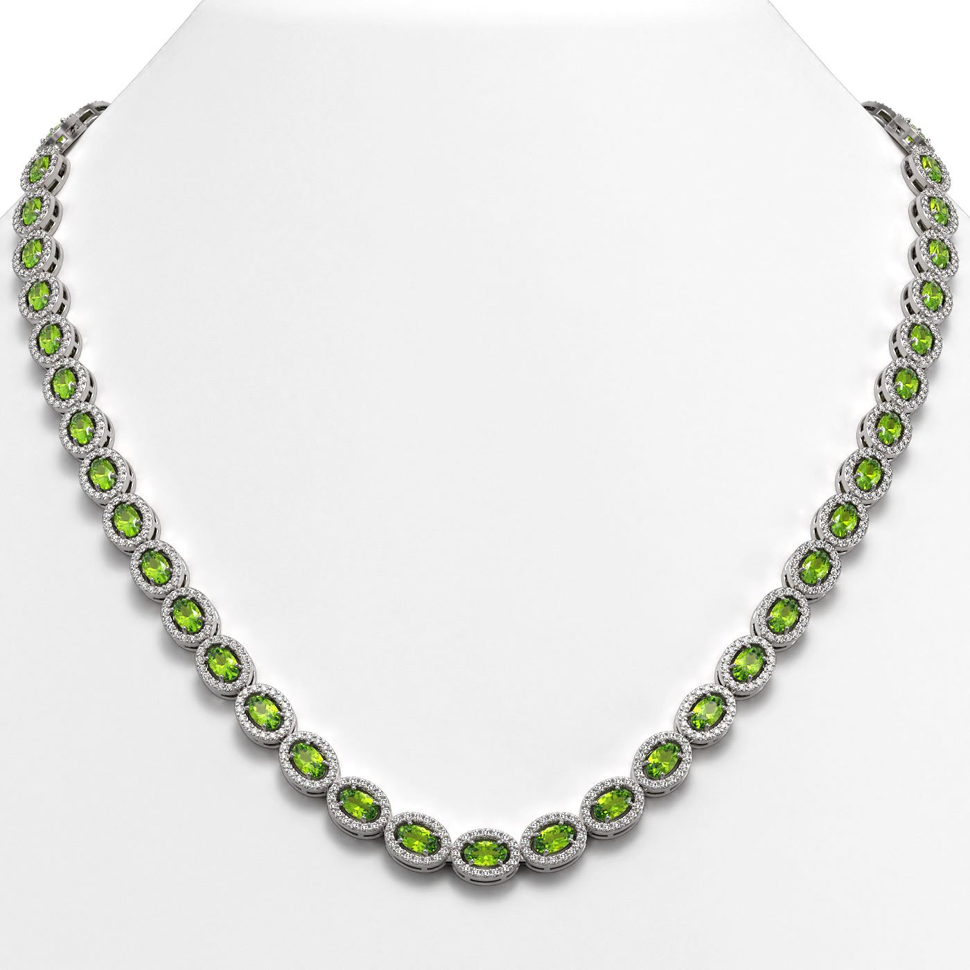 SKU: 40325 ---- 23.86 ctw Peridot & Diamond Micro Pave Halo Necklace 10k White Gold
