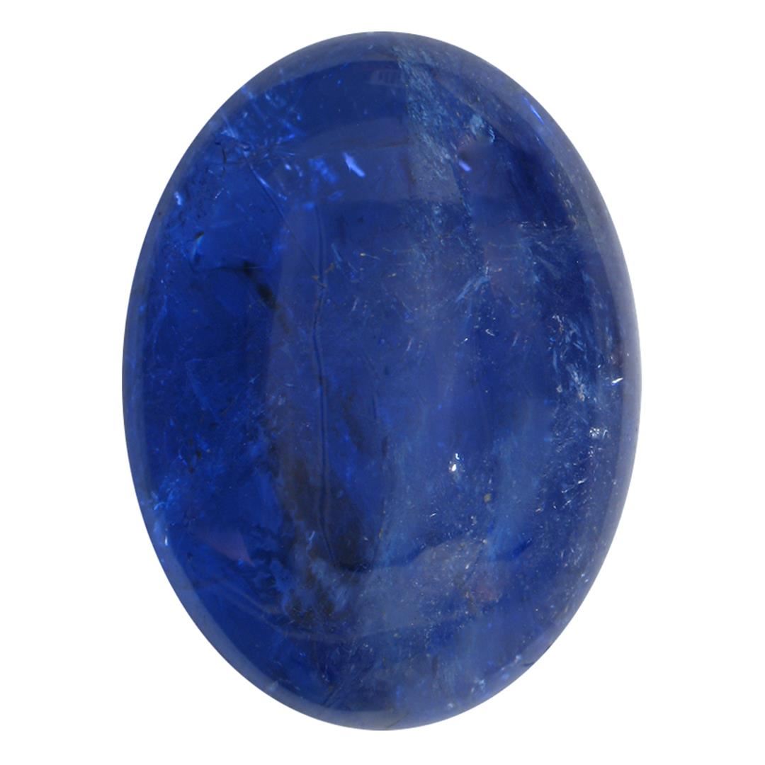 One oval cabochon cut natural tanzanite, measuring 21.00 x 15.00 x 8.00mm, exact weight 23.92ct., clarity is heavily included, type I, dark, very slightly grayish, blue color, (GIA B 7/3), cut is good. Transmitting light somewhat diffusely, transparent to translucent. Naturally occurring internal & external characteristics are present. Indications of heat treatment. Westfield Appraised at $2,295.00.