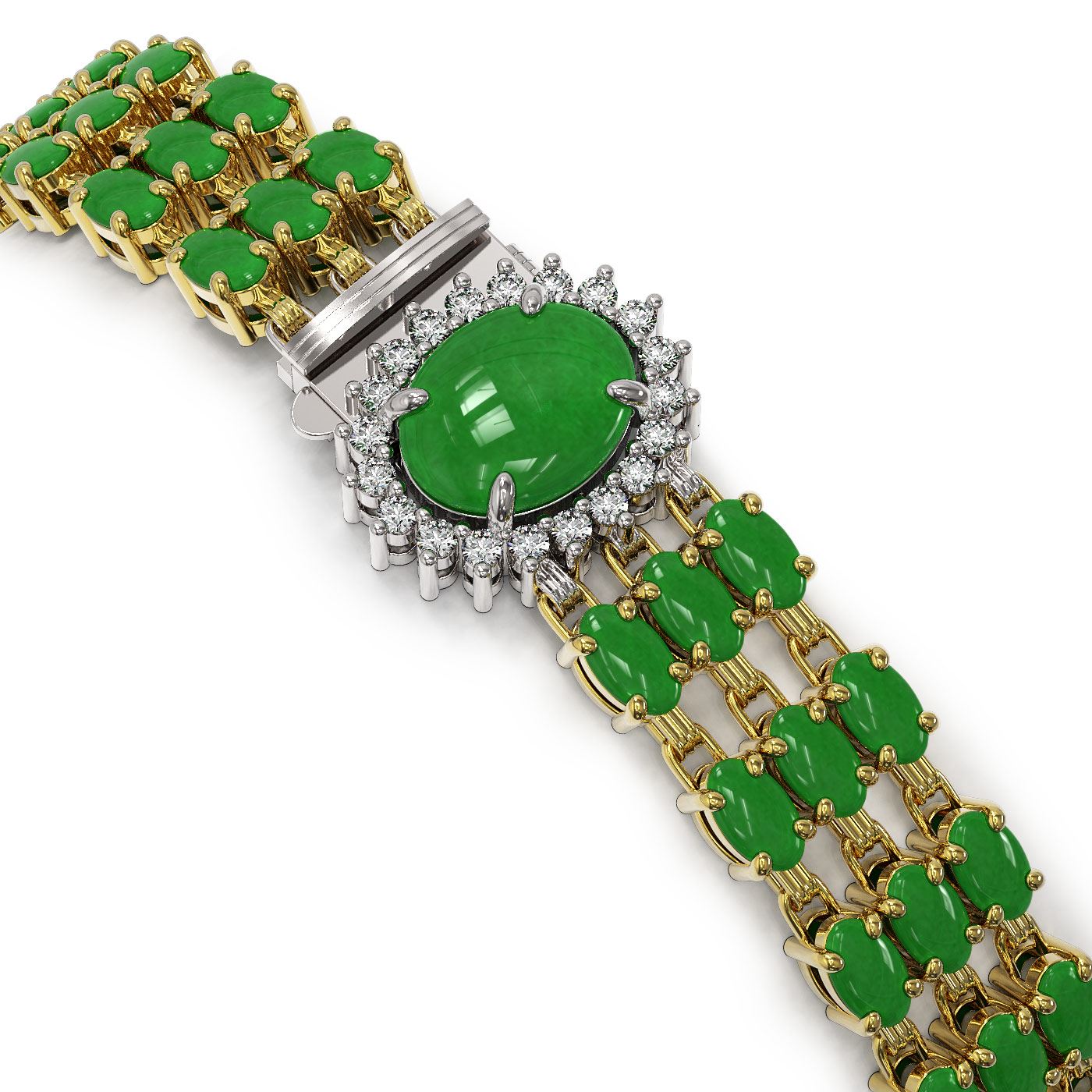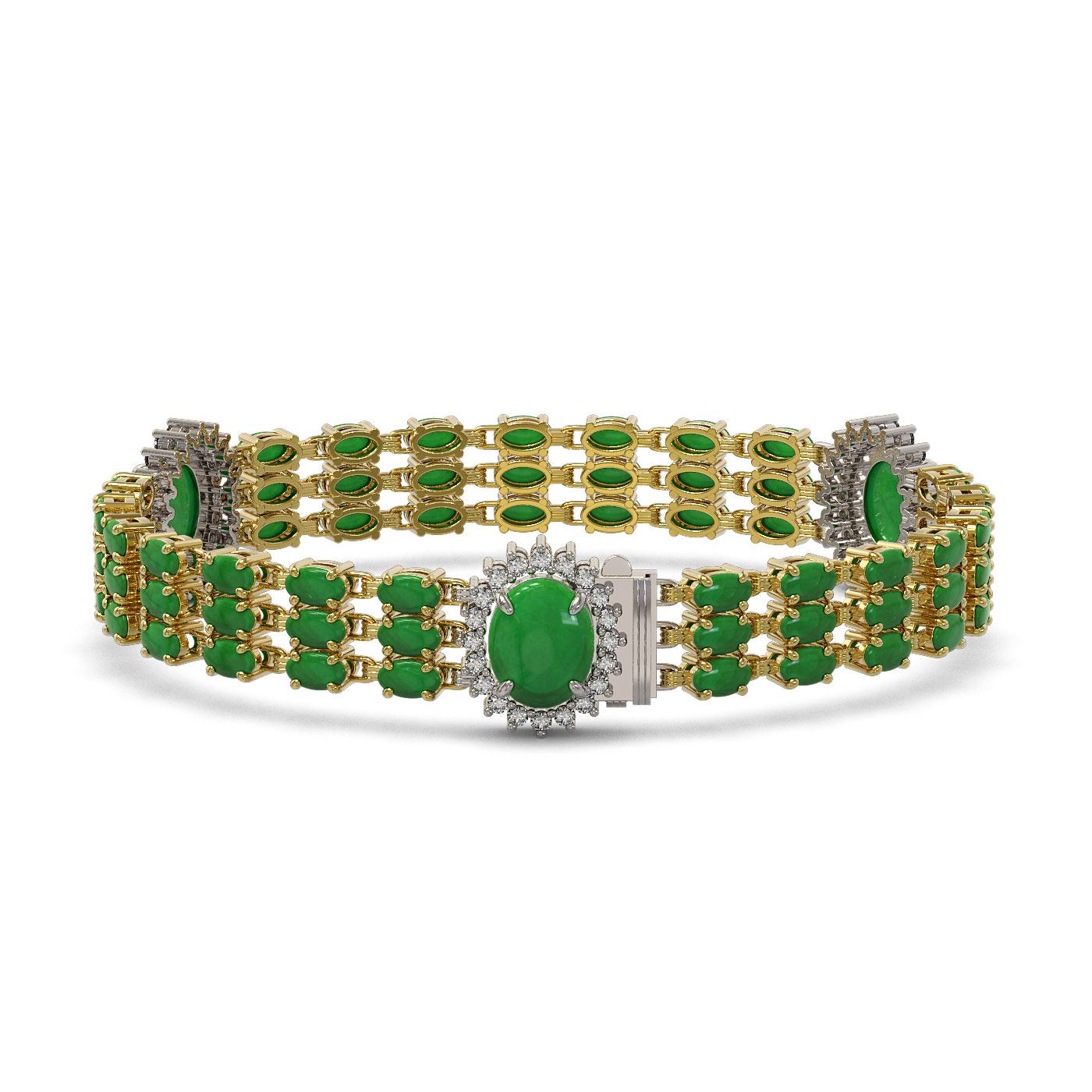 SKU: 45307 ---- 23.92 ctw Jade & Diamond Bracelet 14K Yellow Gold