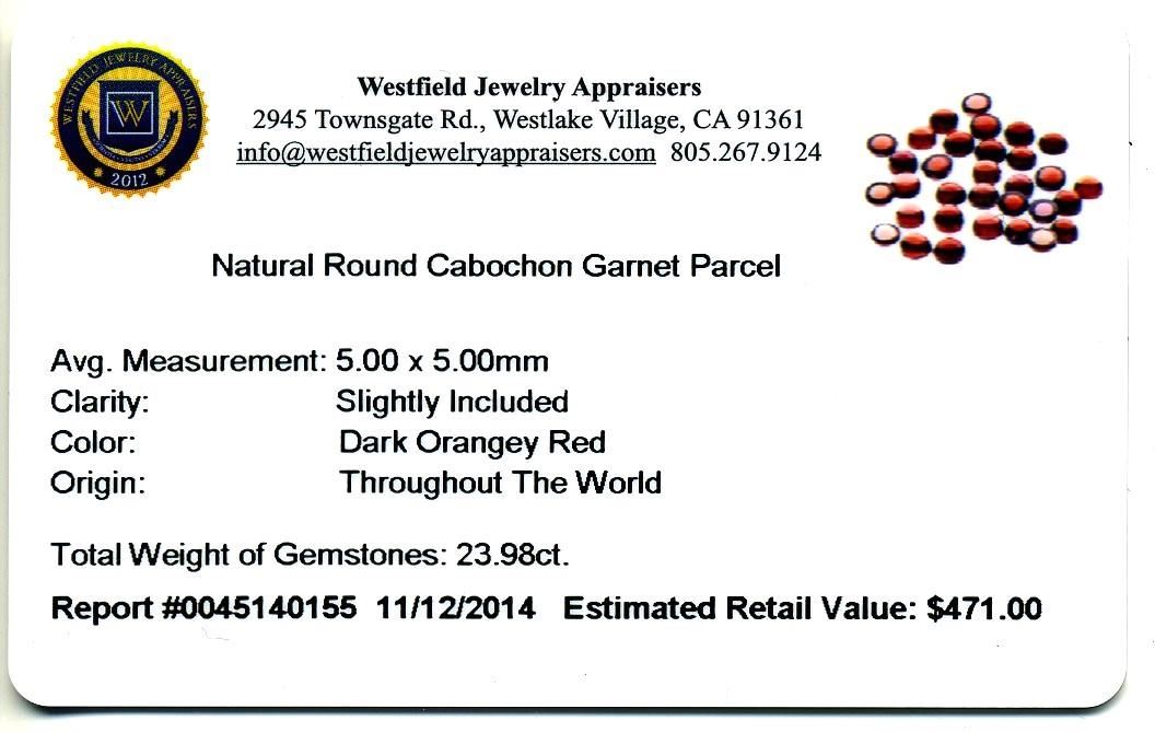23.98ctw. Natural Round Cabochon Garnet Parcel. Westfield Appraised at $471.00.