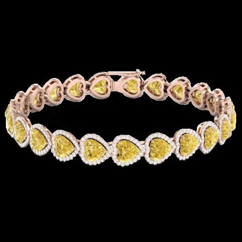 REF-378X5T -22613 ---- 23 CTW Citrine & Micro Pave Bracelet Heart Halo 14K Rose Gold ---- Luxury Designer Brand Bracelet Appraised at $27,050 Certificate Number US22613 14k Rose gold, Bracelet Size is 7 Inches, Bracelet measuring approx. 3/8" x 7 Inches, weighing in total approx. 24 grams. Made in the USA and is stamped 14k, Main stone 19 carat total weight containing 22 pieces of Translucent Yellow color with AAA quality Heart shape cut Citrine , Stone #2 4 carat total weight containing 528 pieces of H-I color with VS/SI quality Round shape cut Diamond