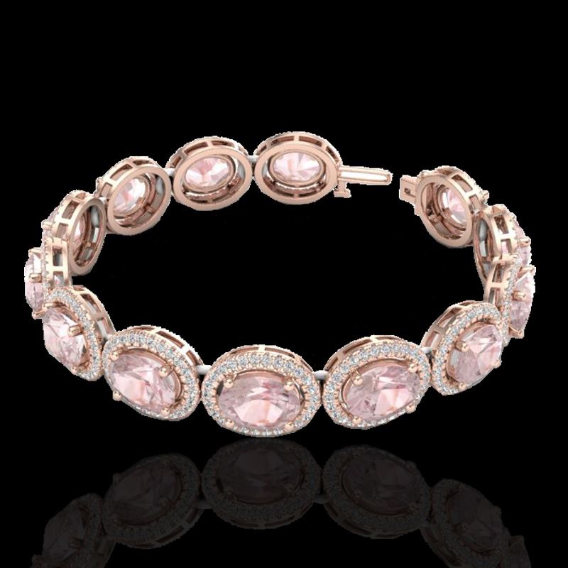 REF-527H3A -22692 ---- 23 CTW Morganite & Micro Pave VS/SI Diamond Bracelet 10K Rose Gold ---- Luxury Designer Brand Bracelet Appraised at $37,700 Certificate Number US22692 10k Rose gold, Bracelet Size is 7 1/2 Inches, Bracelet measuring approx. 1/2" X 7.5" , weighing in total approx. 22 grams. Made in the USA and is stamped 10k, Main stone 20 carat total weight containing 15 pieces of Medium Orange Pink color with AAA quality Oval shape cut Morganite , Stone #2 4 carat total weight containing 375 pieces of H-I color with VS/SI quality Round shape cut Diamond