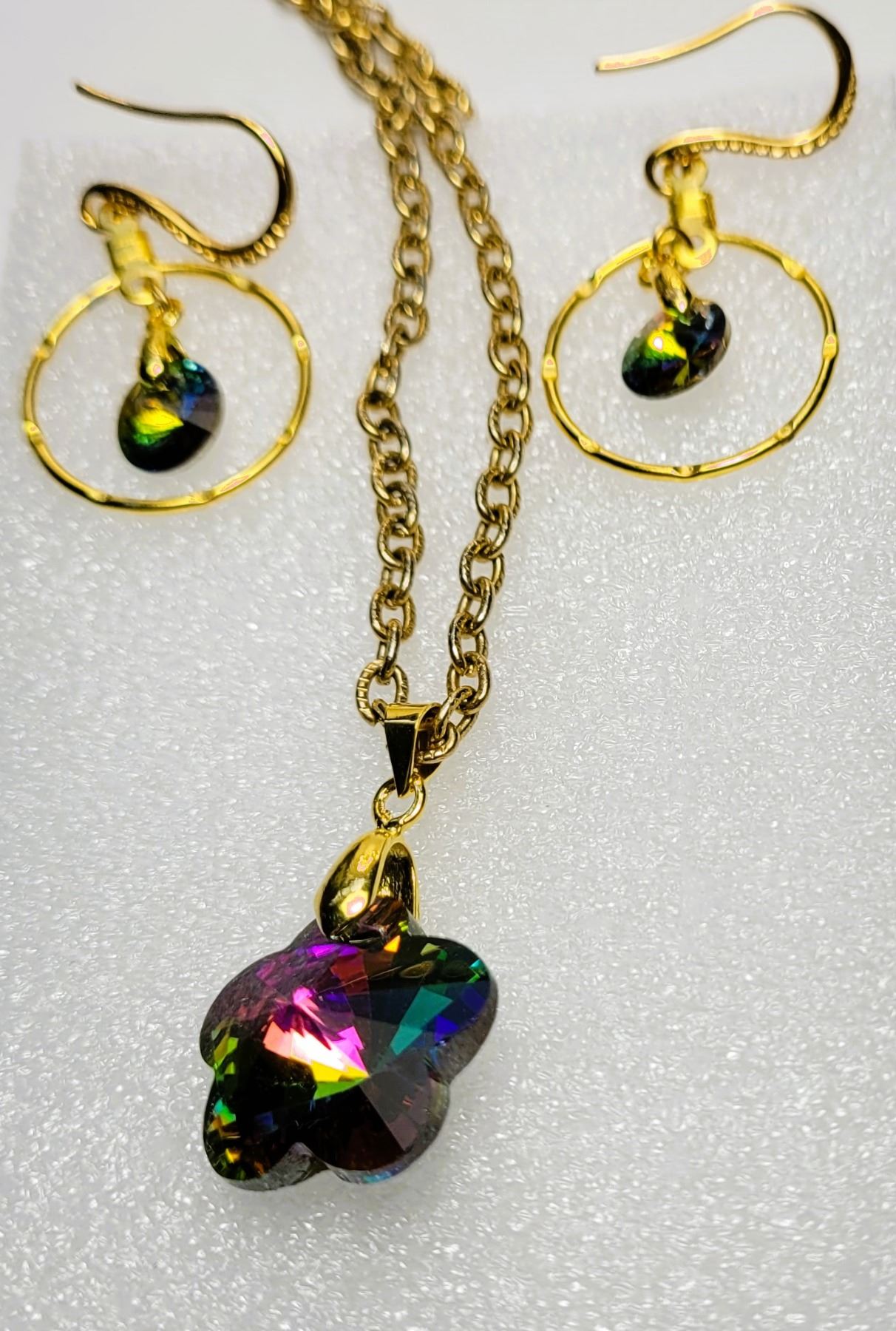 PENDANT ON CHAIN AND DROP EARRINGS ON FISHHOOKS. JEWELRY