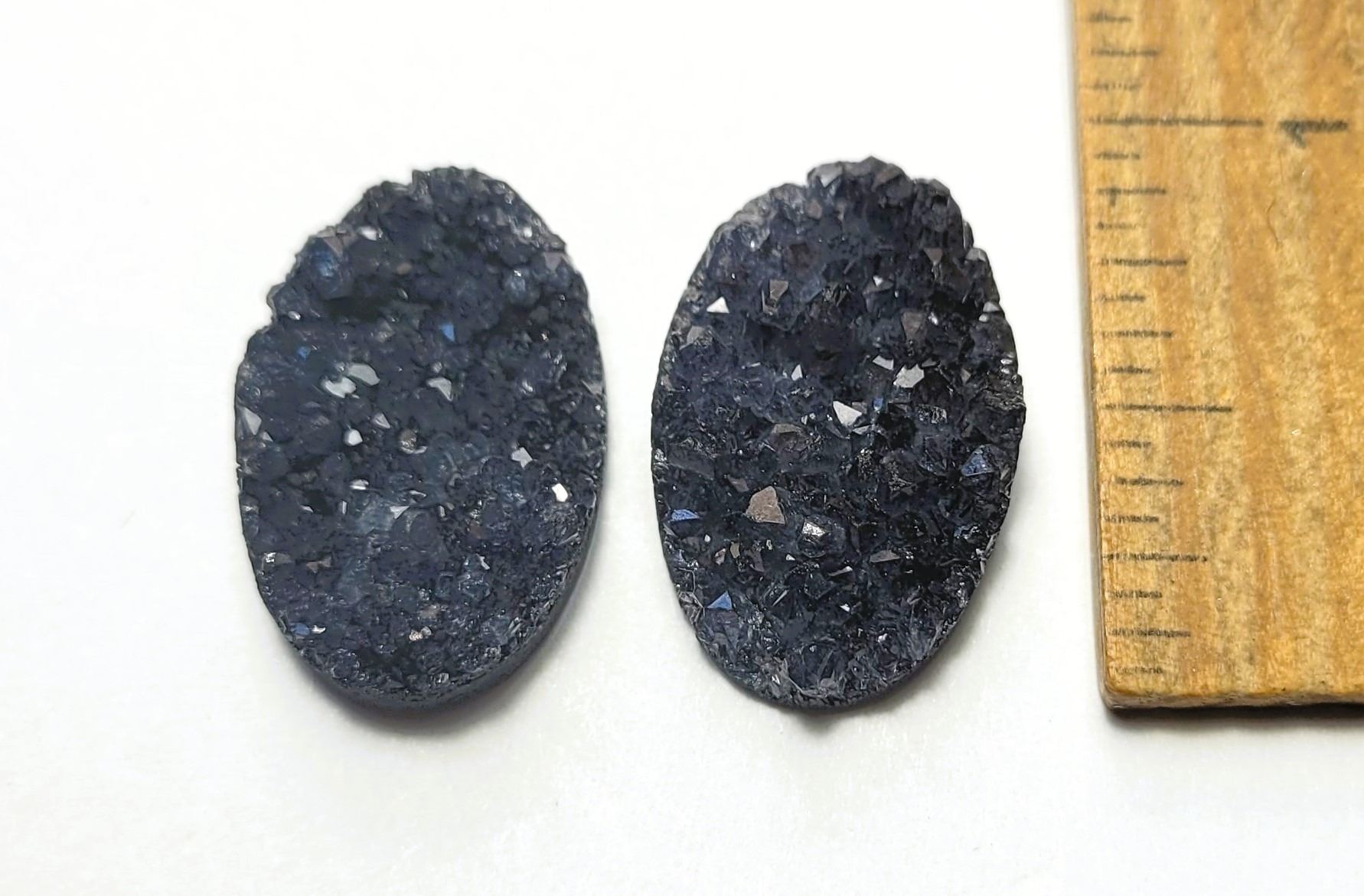 23) LOT OF 2 OVAL BLACK DRUZY GEMSTONES, TOTAL