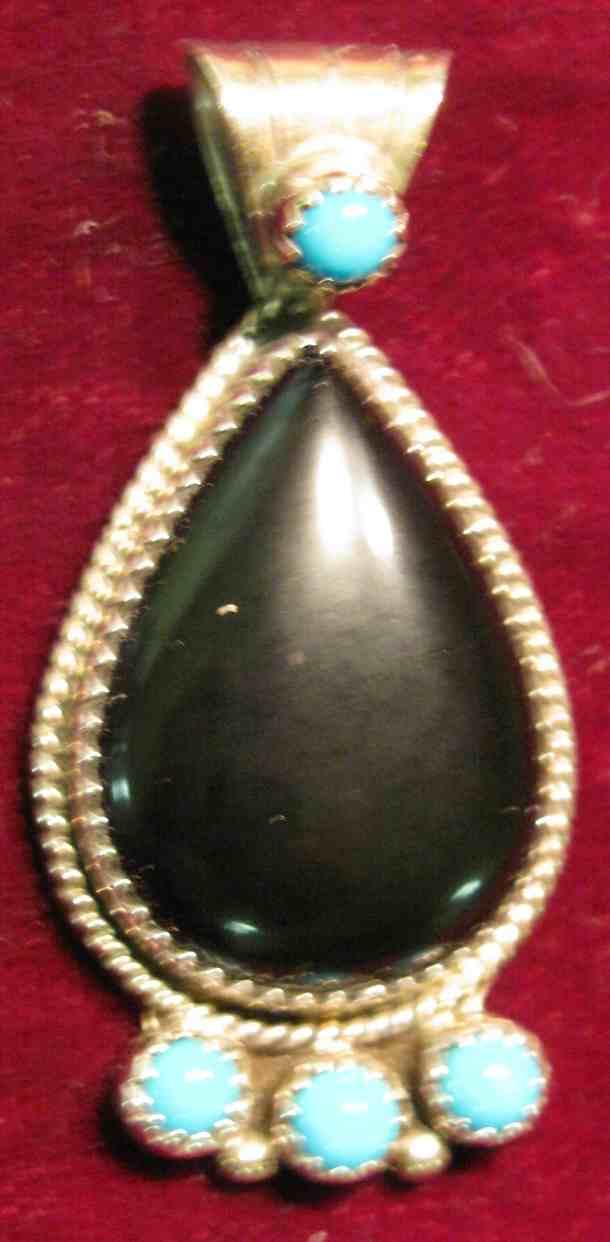 23. Large Sterling Silver Pendant with hand set Black Onyx &Turquoise stones. Apraised value $150-175.00.