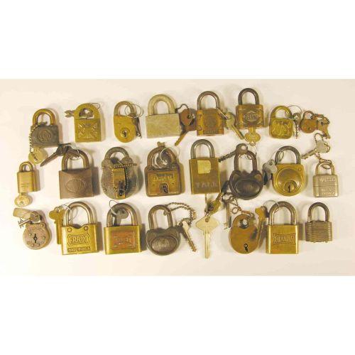 23 Misc. padlocks including Midget, Duo-lock and U.S. Various sizes and conditions, all with keys.