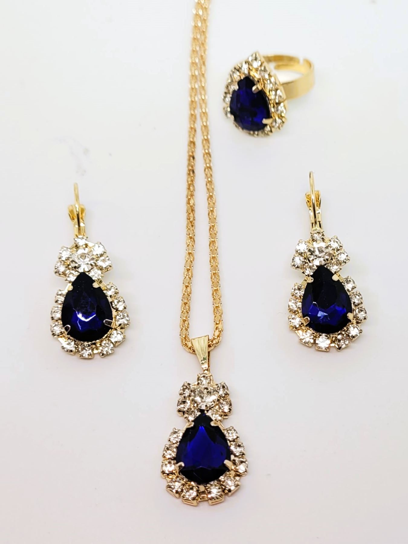 DIAMOND WHITE CZ PENDANT ON 18" CHAIN, DROP EARRINGS AND RING. JEWELRY