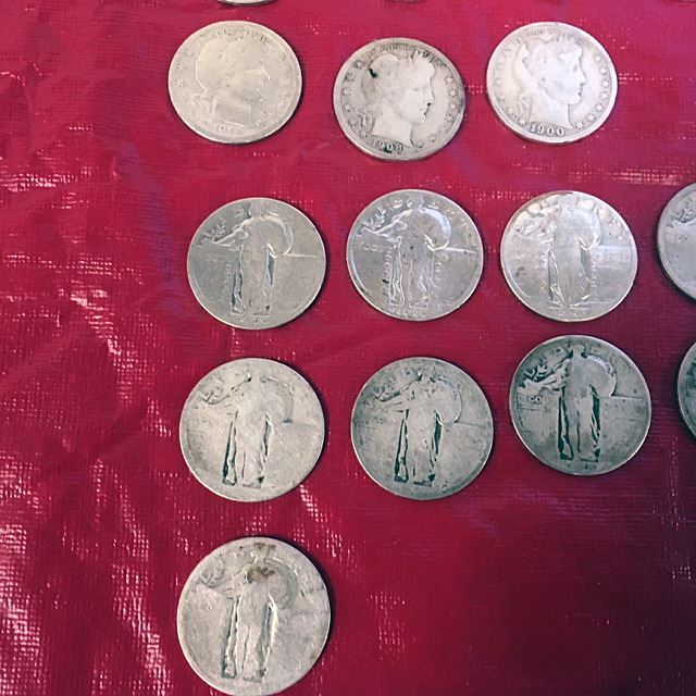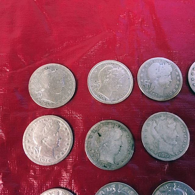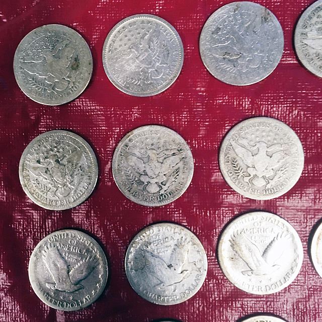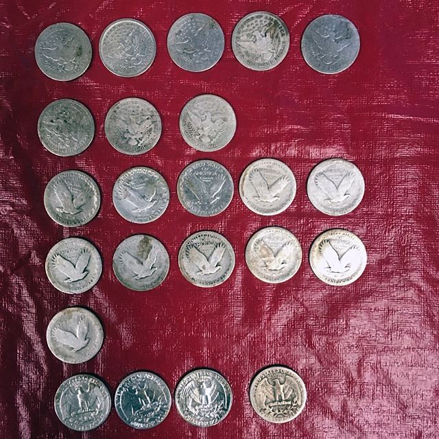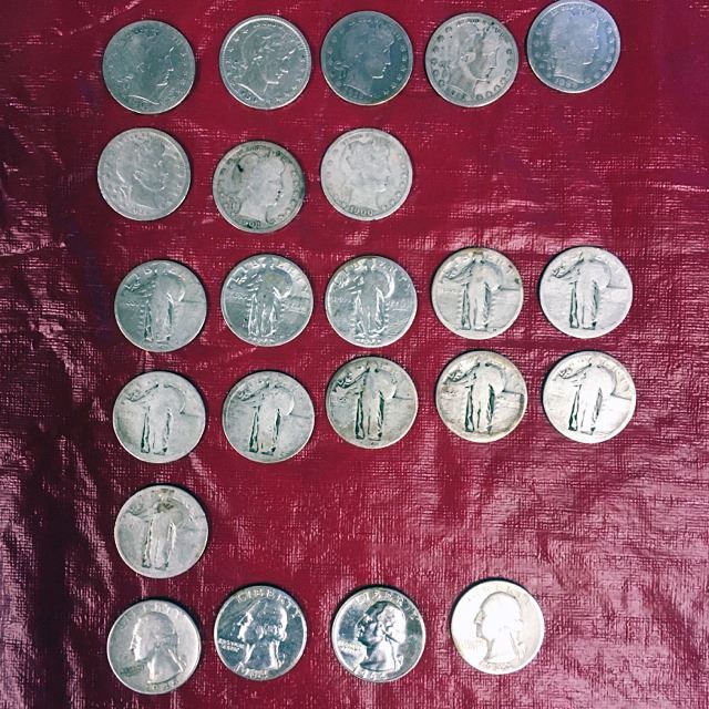 23 Silver Quarters; 8 Barber, 11 Walking Liberty, and 4 Washington