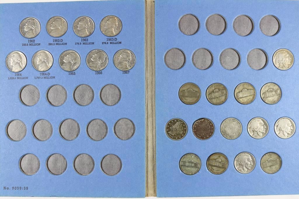 3-LIBERTY "V" NICKELS, 4-BUFFALO NICKELS, 7-35% SILVER JEFFERSON WAR NICKELS AND 9-JEFFERSON NICKELS