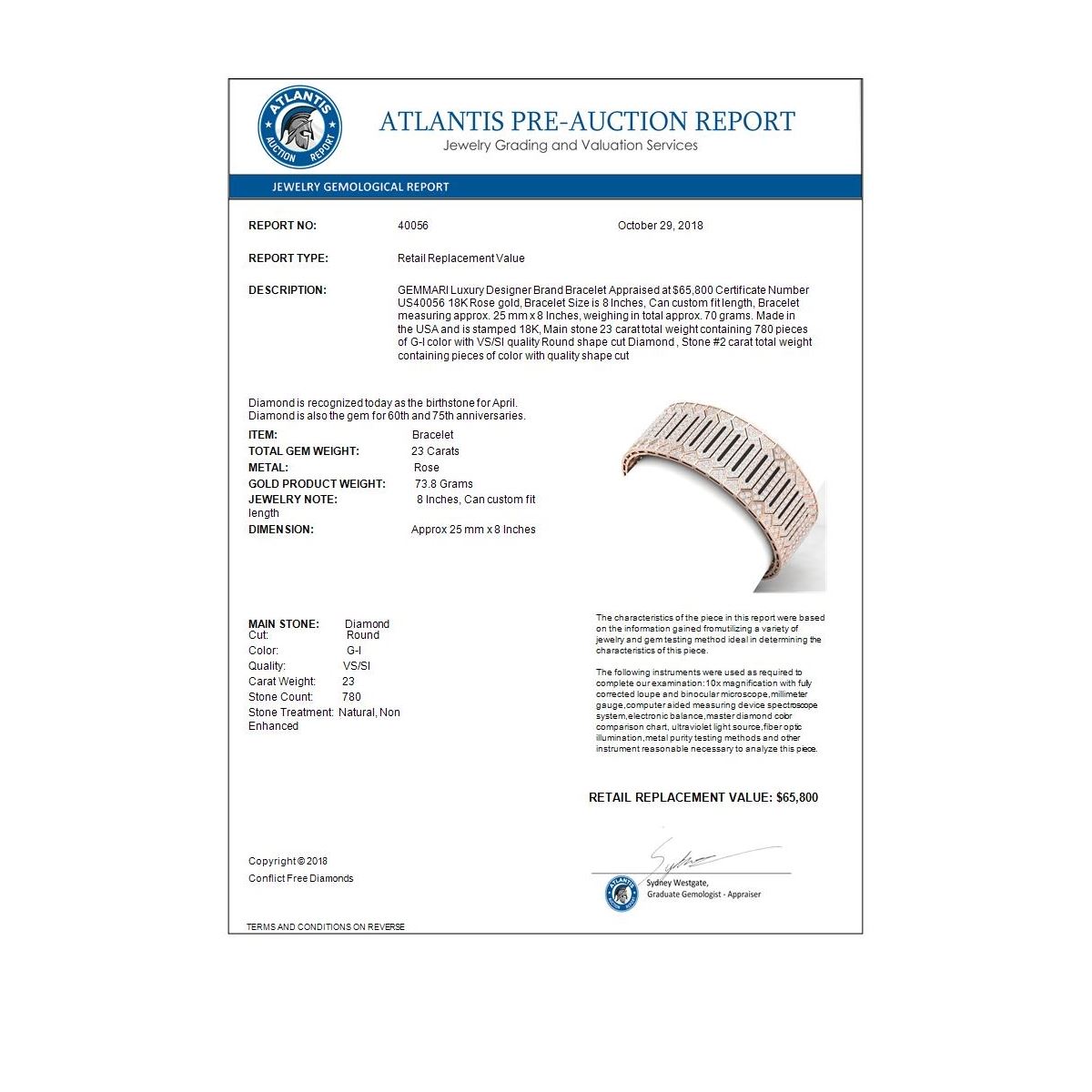 Bidders agree to pay a 19% buyer's premium added to the hammer price of the lot being auctioned. Condition reports and/or Gemological reports in Auction catalog are not guaranteed and may vary in accuracy. It is the responsibility of prospective bidders to inspect the goods. All reports, measurements, opinion of values, age and quality are offered by Oxford Auction but are not guaranteed. Neither the auction house, nor the consignor, is responsible for the accuracy of printed or verbal descriptions or its authenticity. All jewelry items sold by Oxford Auction are evaluated by third party appraisal firms where certified GIA gemologists evaluate the weight, size and grade of gemstone and/or metal to determine the replacement value of the item. Please be advised that all appraisals are done for insurance purposes only and do not determine the actual value of the jewelry on auction. The appraisals are done for the sole purpose of protecting the buyer in the event of damage or loss of purchased jewelry items from Oxford Auction. Oxford Auction is not responsible for the opinions and appraisals of any third party appraisal firms and their experts.