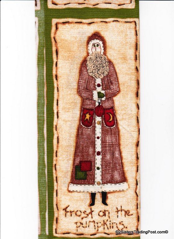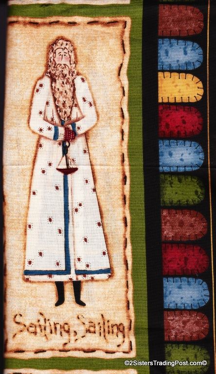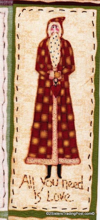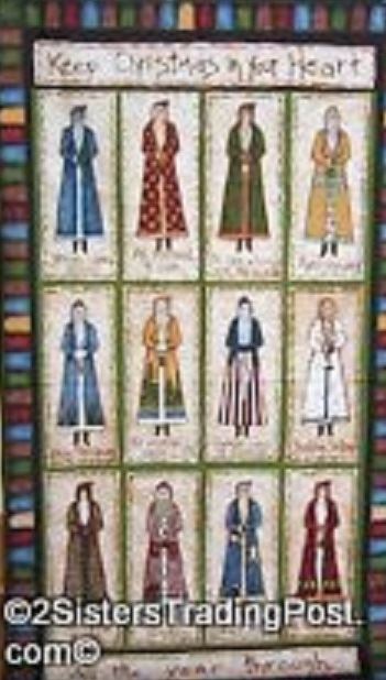 Keep Christmas in Your Heart' designed by Robin Betterley for South Sea Imports 100% cotton fabric panel. Featuring 12 St. Nicks and 12 sayings one for each month. Stained glass window effect around the edges. Panel measures 23" from side to side x 44" (selvage edge) from top to bottom
