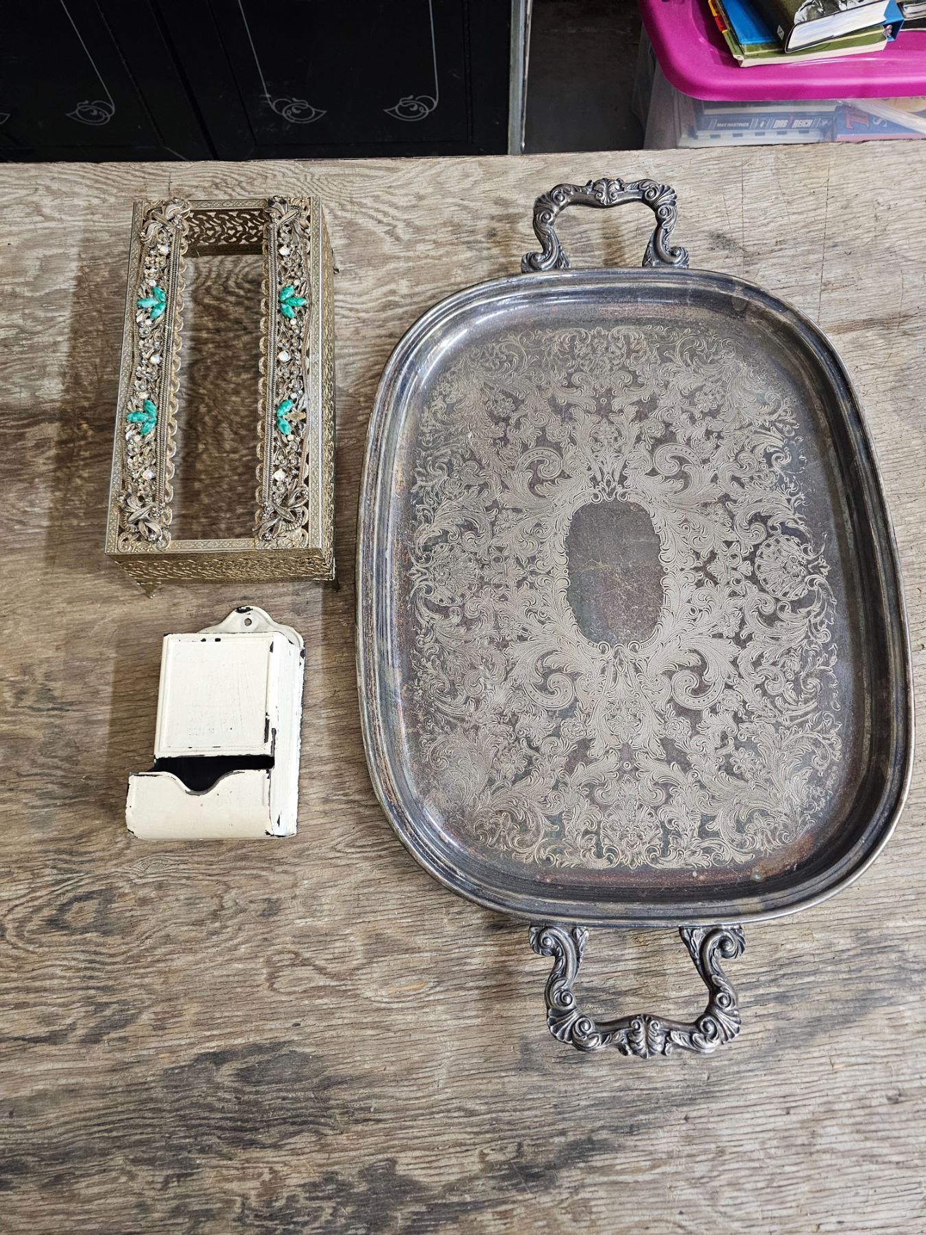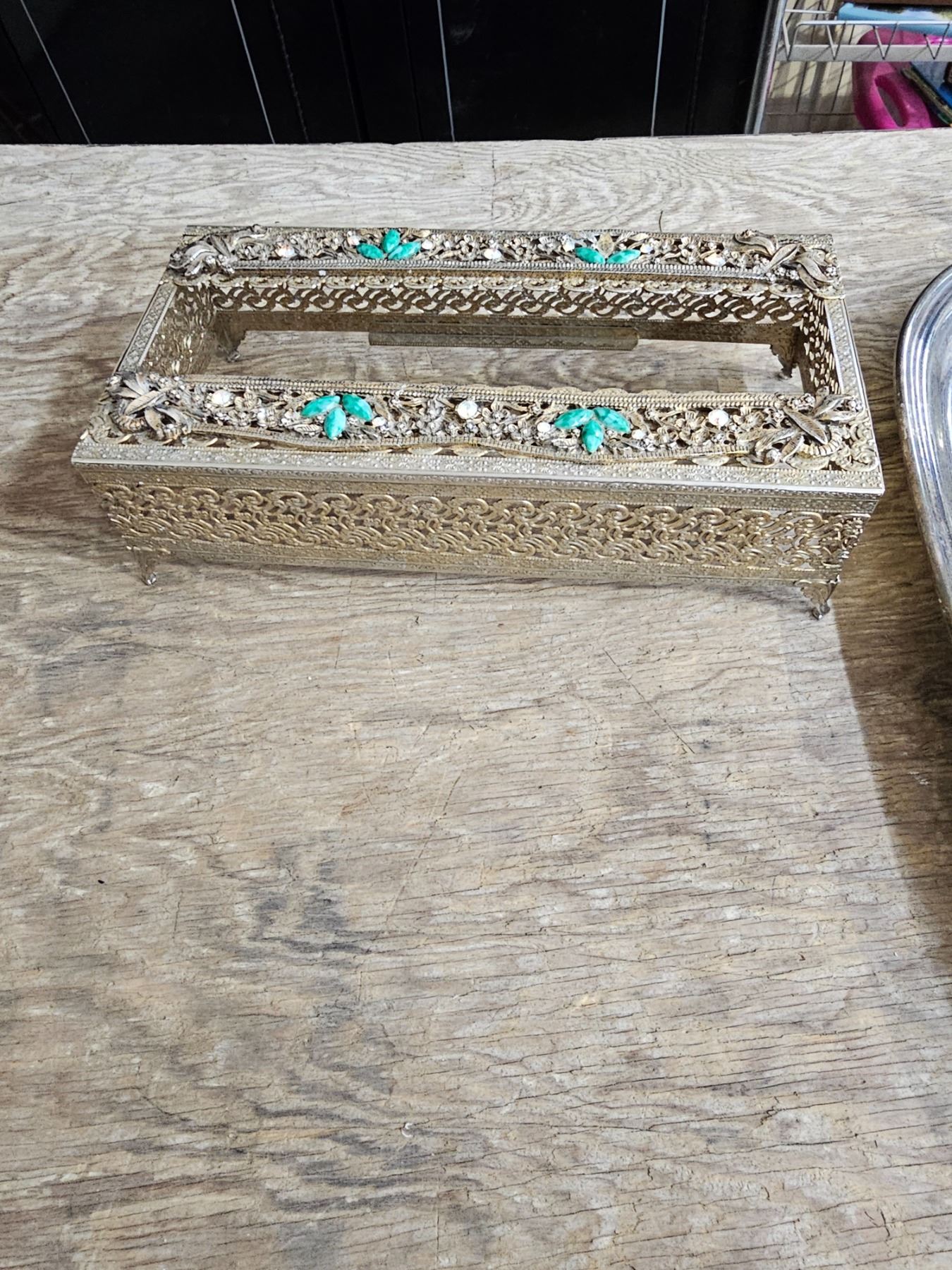 23"x13.5" Silver Plate/Decorative Kleenex Box Cover/Matchbox Holder