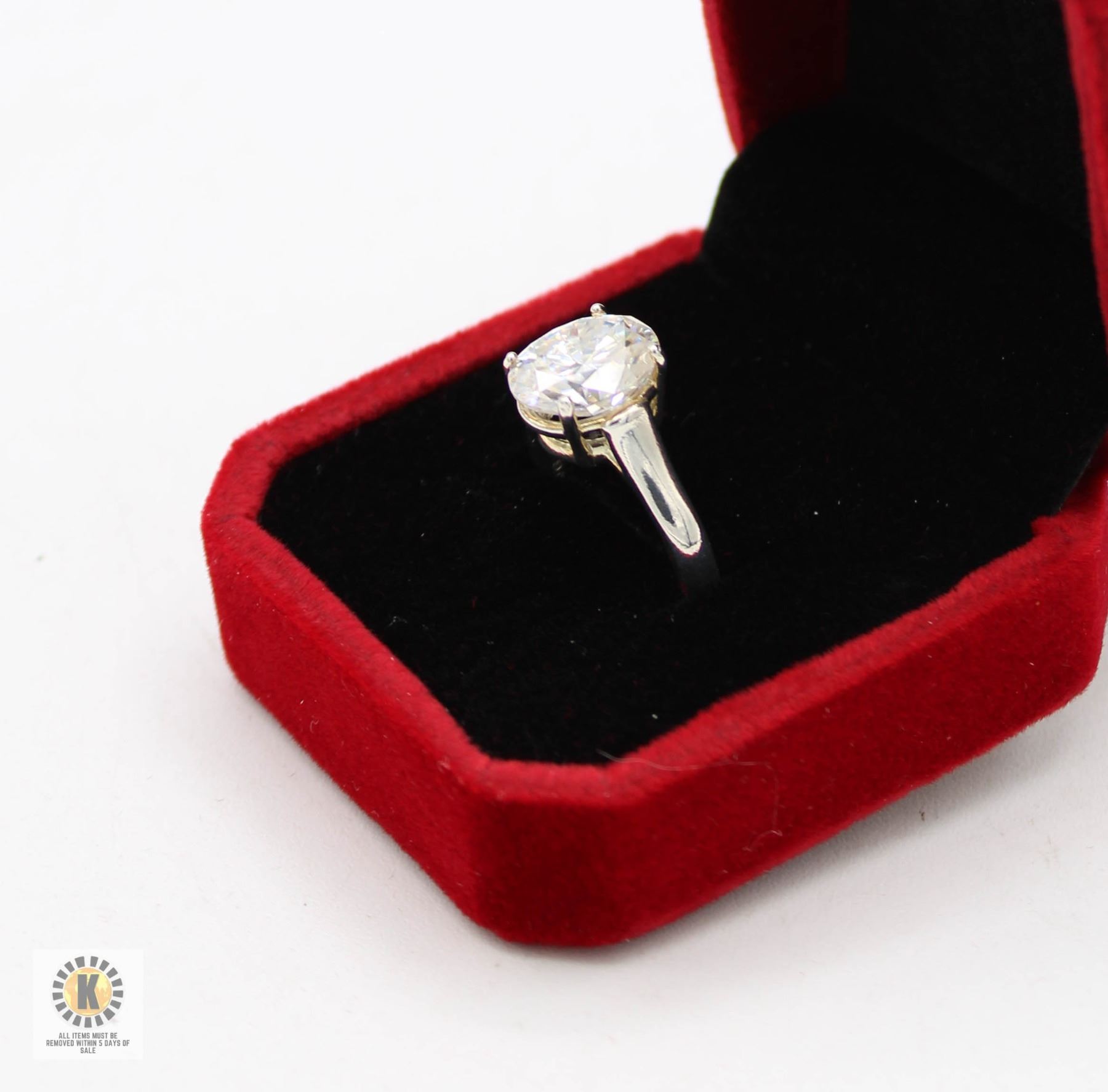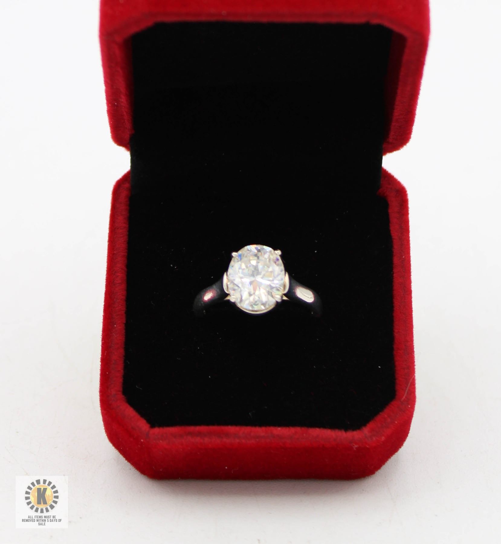 CERTIFIED 9 X 11 MM OVAL SHAPED BRILLIANT CUT MOISSANITE VVS D COLOR SET IN 925 SILVER RING SIZE 7.75 **ALL ITEMS MUST BE REMOVED BY 5PM SATURDAY, MARCH 15TH 2025. ALL REMAINING ITEMS WILL BE SUBJECT TO A $6.00 PER DAY STORAGE CHARGE. ANY ITEMS REMAINING AFTER MONDAY, MARCH 31ST 2025 WILL BE CONSIDERED FORFEITED. NO REFUNDS WILL BE ISSUED FOR FORFEITED ITEMS. TO SCHEDULE A PICK UP APPOINTMENT CLICK HERE