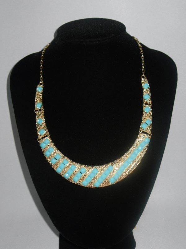 230CTW 5-SLABS SKYBLUE BRASS NECKLACE;18INCH **|**|** 230CTW 5-SLABS SKYBLUE BRASS NECKLACE;18INCH ; MSRP: $200