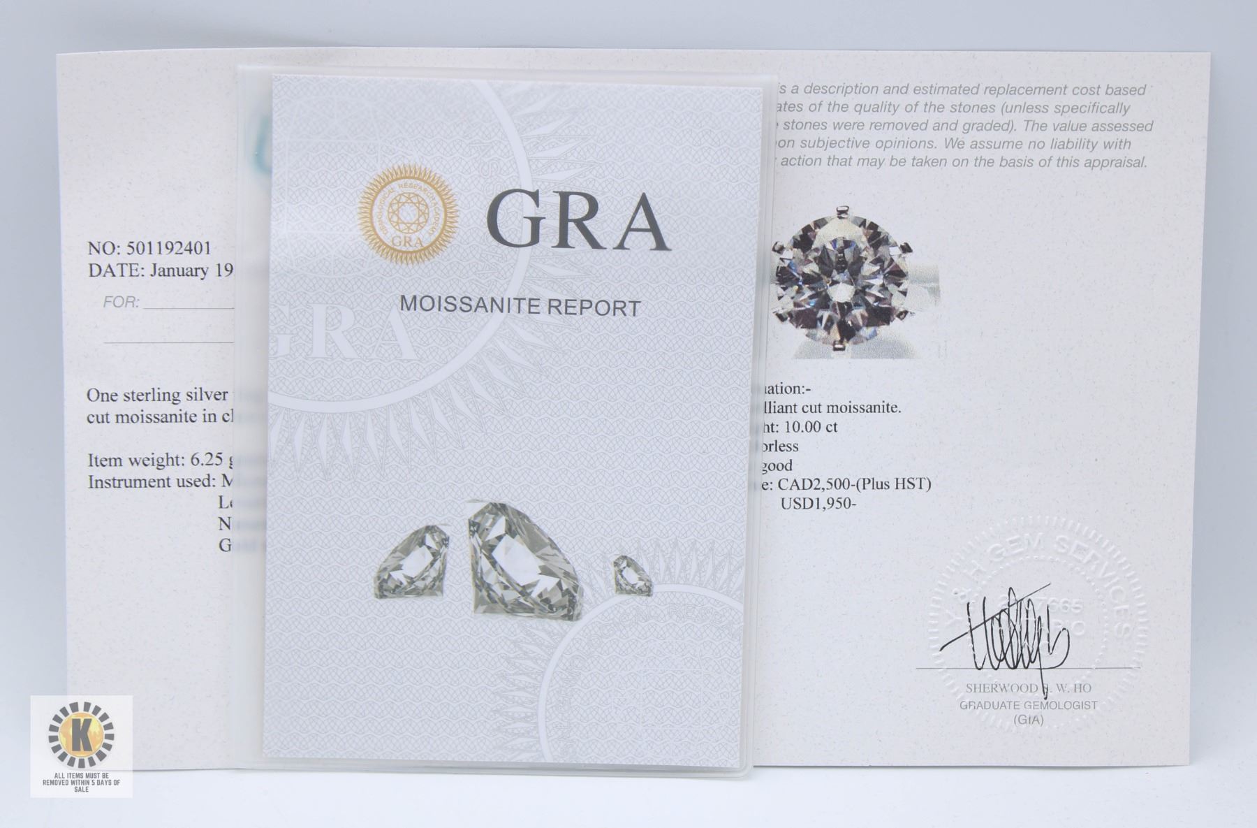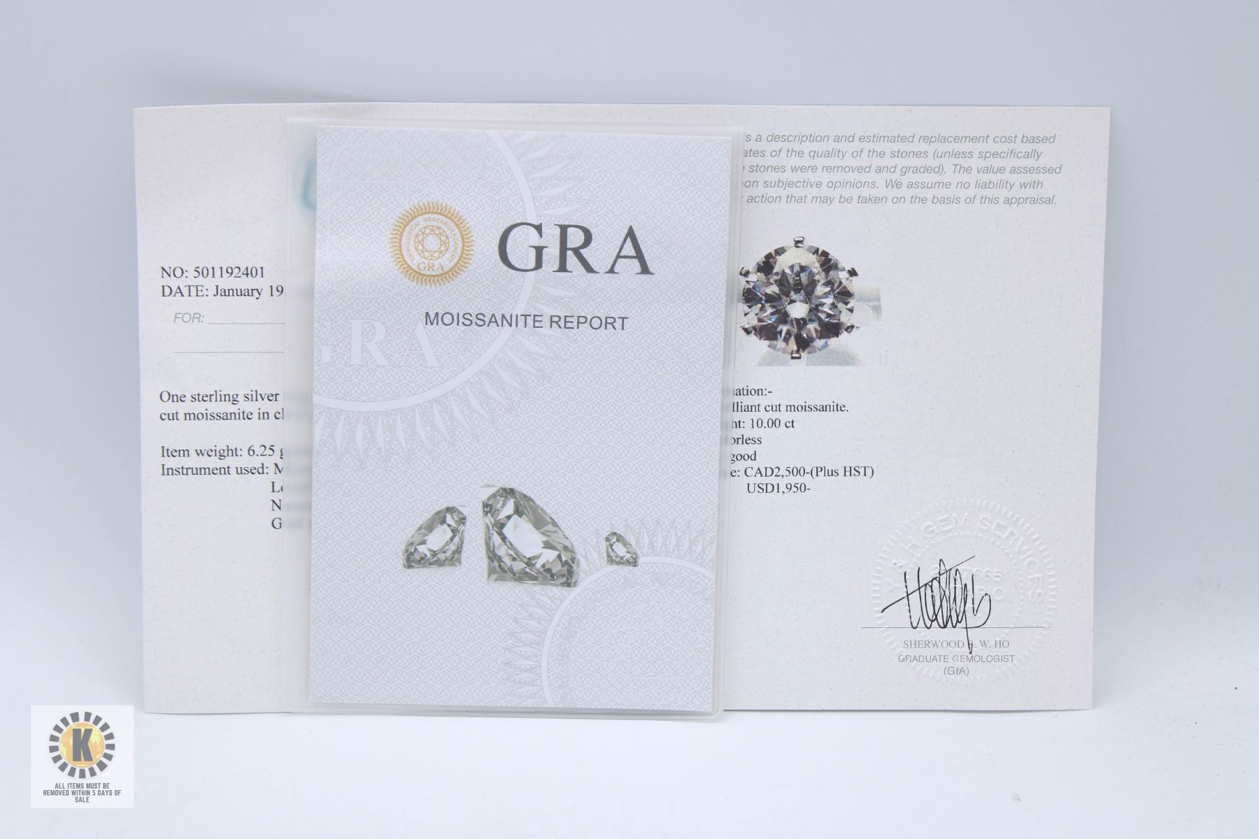CUT MOISSANITE STONE VVS D COLOR SET IN CENTER IN 925 SILVER RING SIZE 9 RETAIL VALUE $2,500.00 **ALL ITEMS MUST BE REMOVED BY 5PM SATURDAY, MARCH 22ND 2025. ALL REMAINING ITEMS WILL BE SUBJECT TO A $6.00 PER DAY STORAGE CHARGE. ANY ITEMS REMAINING AFTER MONDAY, APRIL 7TH 2025 WILL BE CONSIDERED FORFEITED. NO REFUNDS WILL BE ISSUED FOR FORFEITED ITEMS. TO SCHEDULE A PICK UP APPOINTMENT CLICK HERE