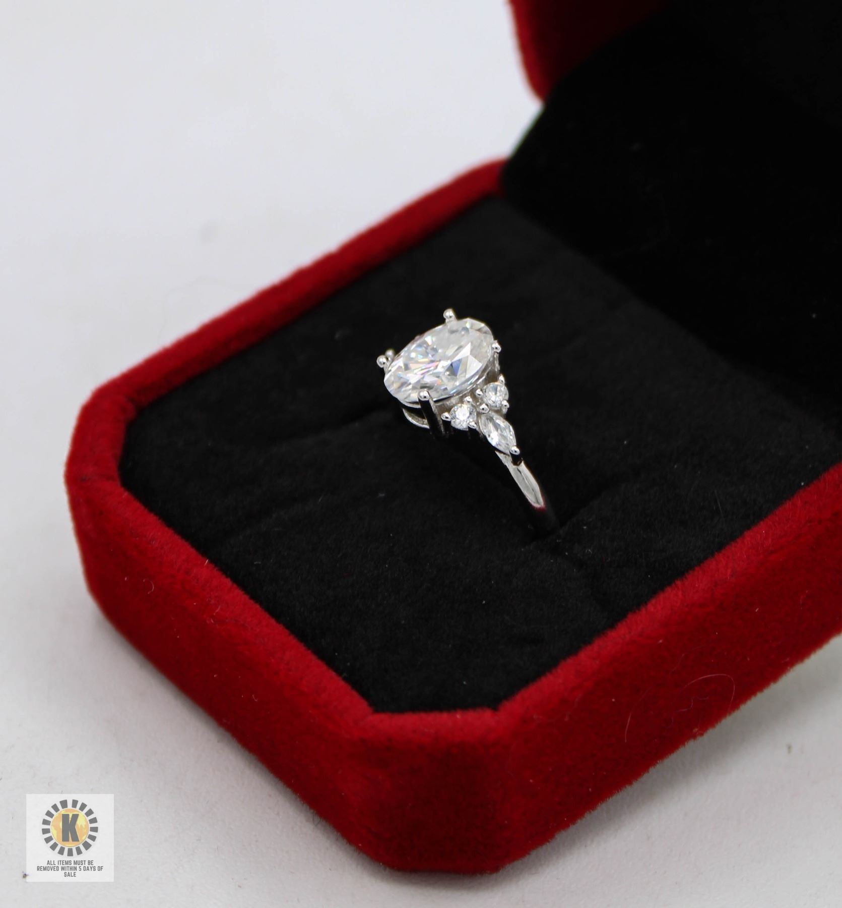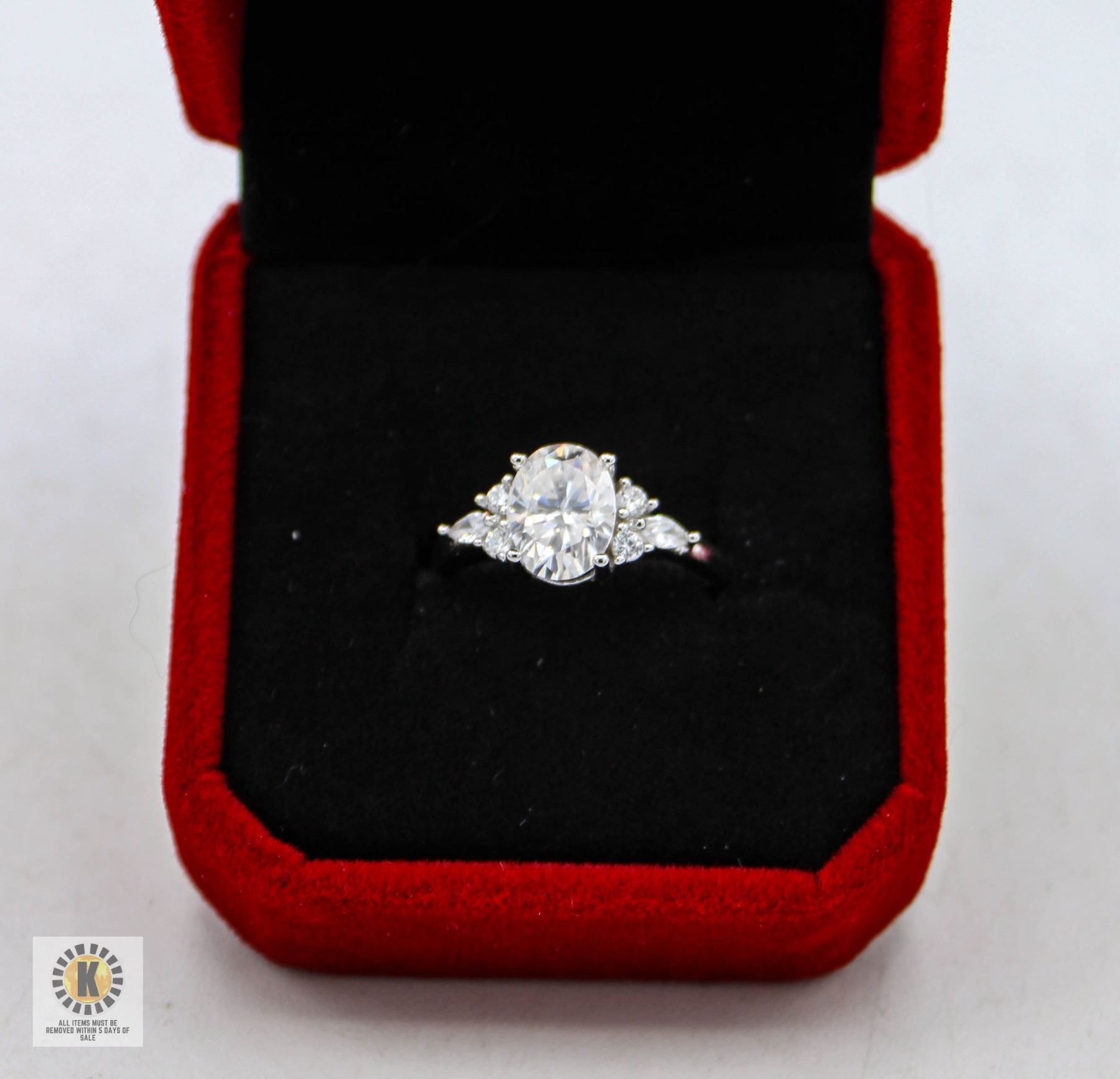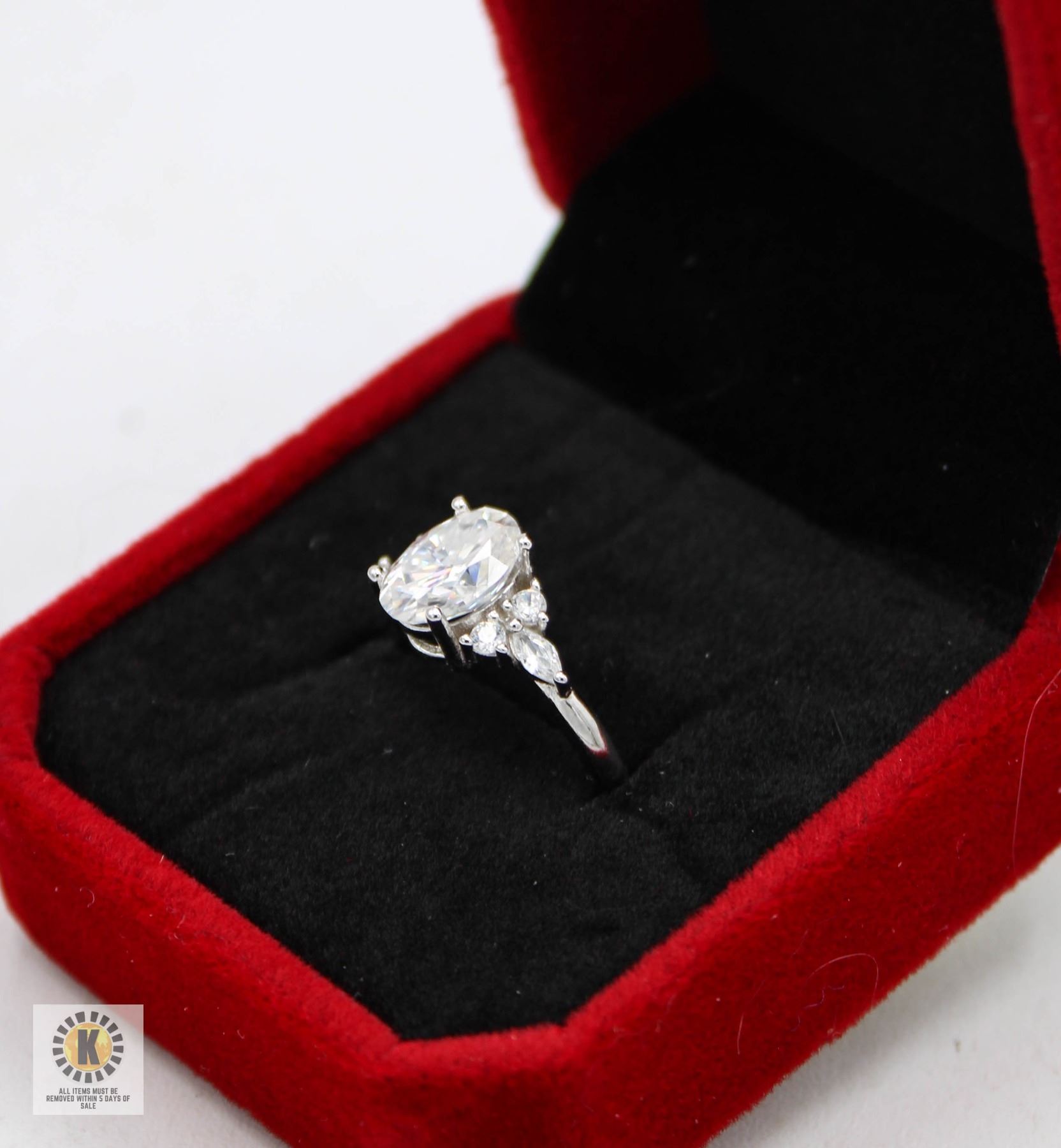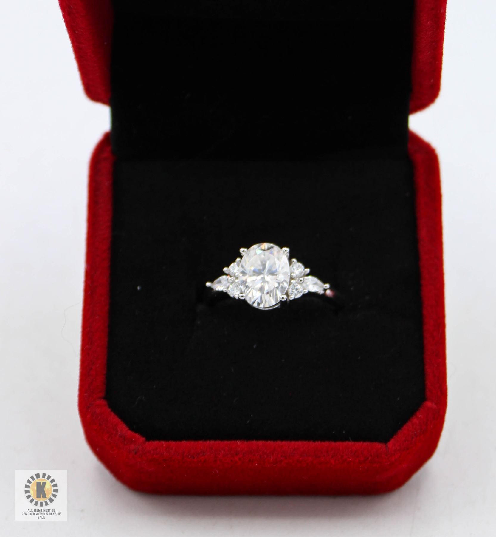 CUT MOISSANITE STONE VVS D COLOR SET WITH 4 ROUND BRILLIANT CUT CZ?S AND 2 MARQUISE SHAPED CZ?S SET IN 925 SILVER RING SIZE 6 RETAIL VALUE $925.00 **ALL ITEMS MUST BE REMOVED BY 5PM SATURDAY, MARCH 22ND 2025. ALL REMAINING ITEMS WILL BE SUBJECT TO A $6.00 PER DAY STORAGE CHARGE. ANY ITEMS REMAINING AFTER MONDAY, APRIL 7TH 2025 WILL BE CONSIDERED FORFEITED. NO REFUNDS WILL BE ISSUED FOR FORFEITED ITEMS. TO SCHEDULE A PICK UP APPOINTMENT CLICK HERE