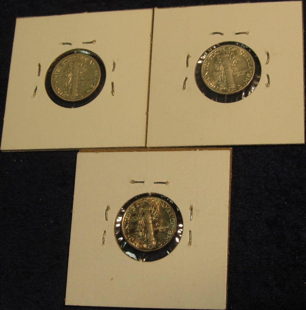 233. 1931 S VF & (2) 43 P BU Mercury Dimes. Redbook value $34.00.