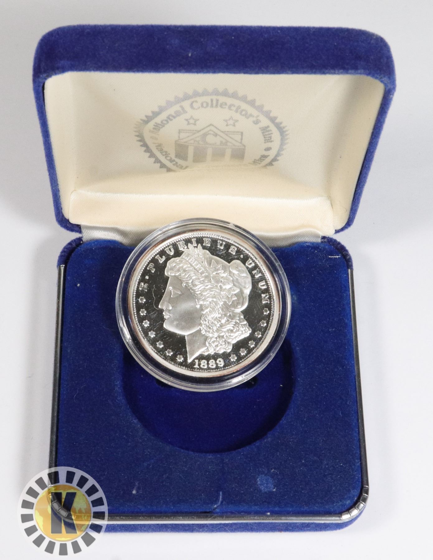 DISPLAY SILVER MORGAN DOLLAR 1889 COPY# BRO960 CASED***ITEM(S) LOCATED IN LETHBRIDGE ALBERTA, FREE TRANSPORT TO OUR EDMONTON OFFICE AVAILABLE***