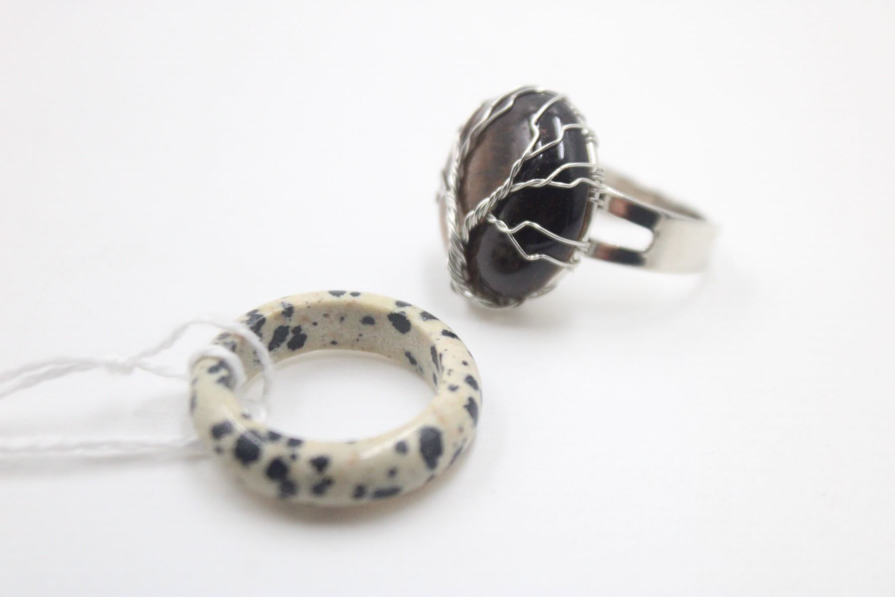 #233- NATURAL TIGER EYE & SPORT JASPER RING 2PC