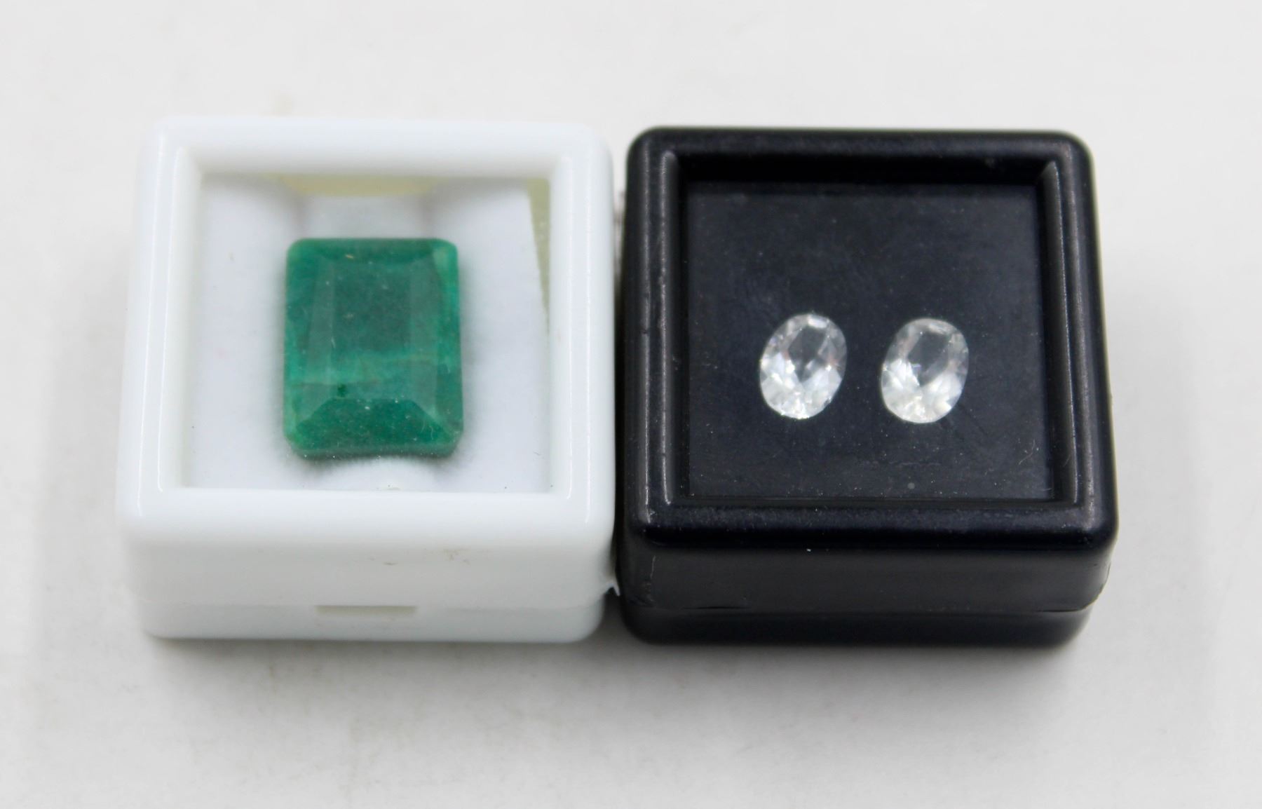 UNTREATED TOPAZ 5 X7 MM /COLOUR ENHANCES EMERALD 14.8 X 10.9MM