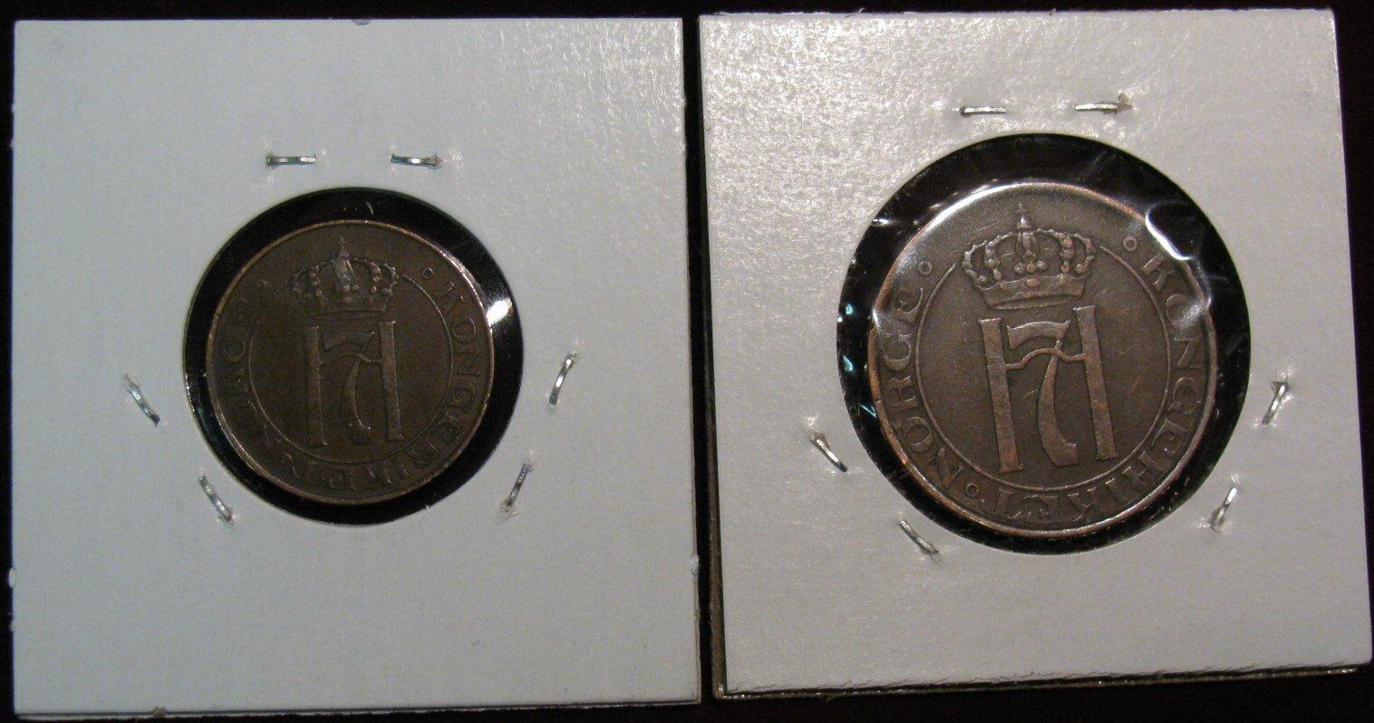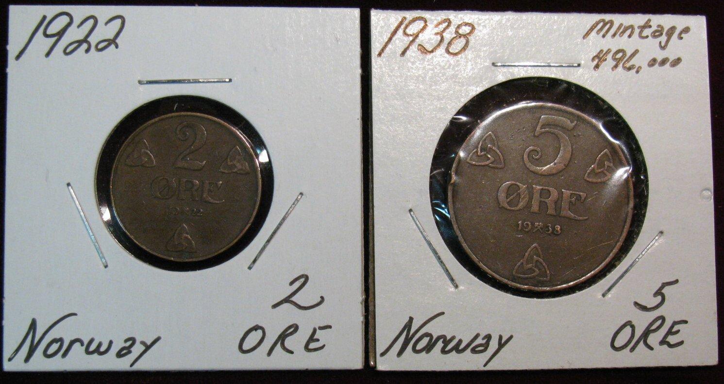 233. Norway 1922 2-Ore & 1938 5-Ore. VF-EF.