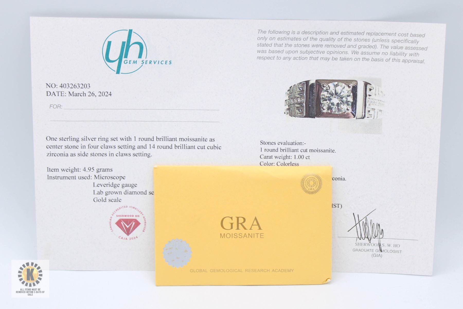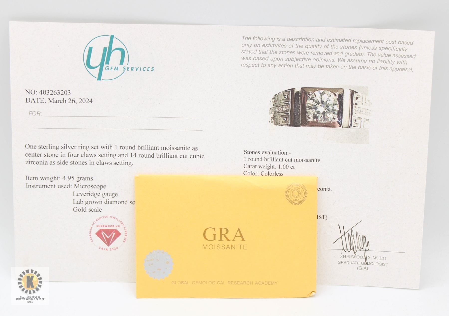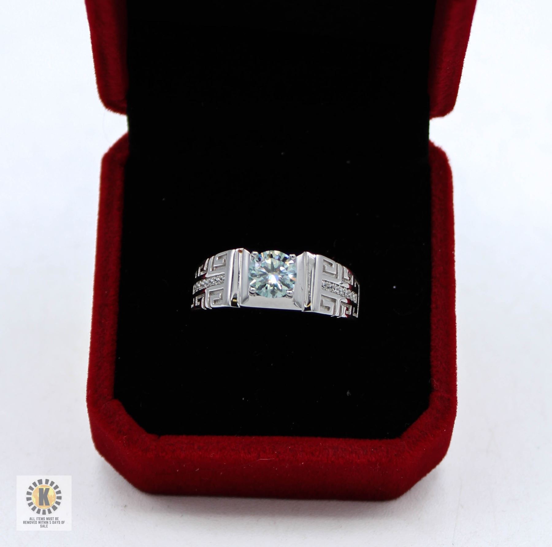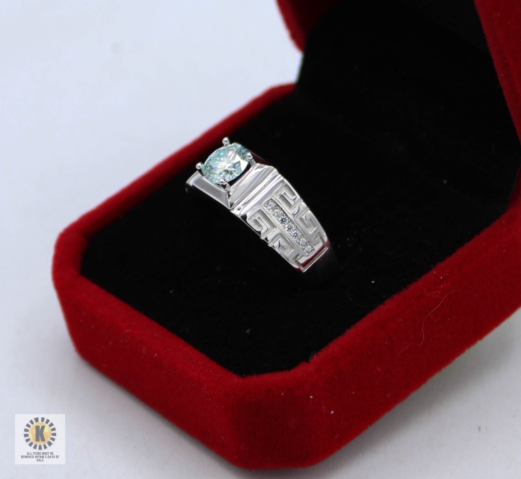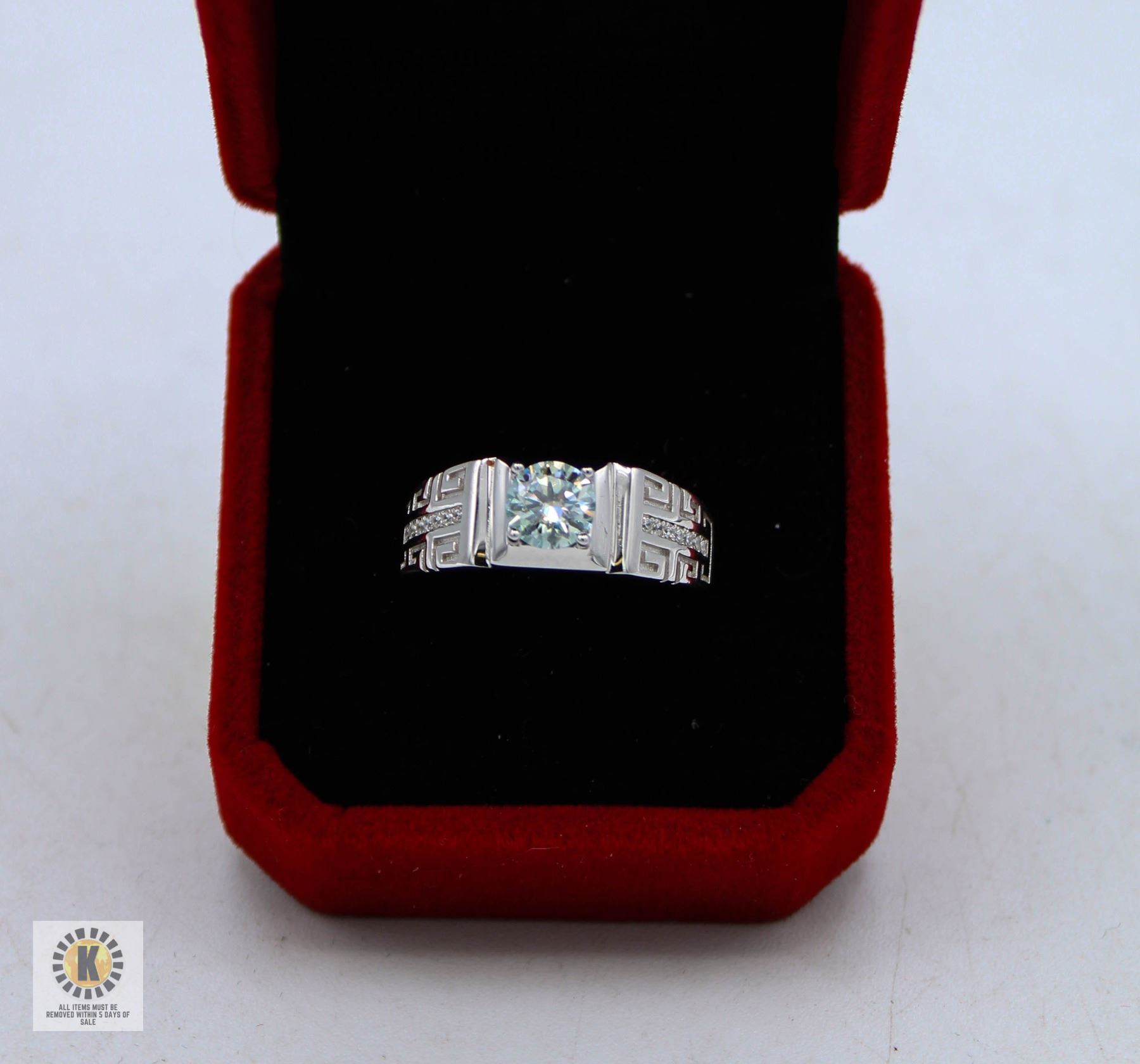 CUT MOISSANITE STONE VVS D COLOR SET IN CENTER WITH 14 ROUND BRILLIANT CUT CUBIC ZIRCONIA?S SET ON EITHER SIDE SET IN 925 SILVER RING SIZE ADJUSTABLE RETAIL VALUE $675.00 **ALL ITEMS MUST BE REMOVED BY 5PM SATURDAY, MARCH 22ND 2025. ALL REMAINING ITEMS WILL BE SUBJECT TO A $6.00 PER DAY STORAGE CHARGE. ANY ITEMS REMAINING AFTER MONDAY, APRIL 7TH 2025 WILL BE CONSIDERED FORFEITED. NO REFUNDS WILL BE ISSUED FOR FORFEITED ITEMS. TO SCHEDULE A PICK UP APPOINTMENT CLICK HERE