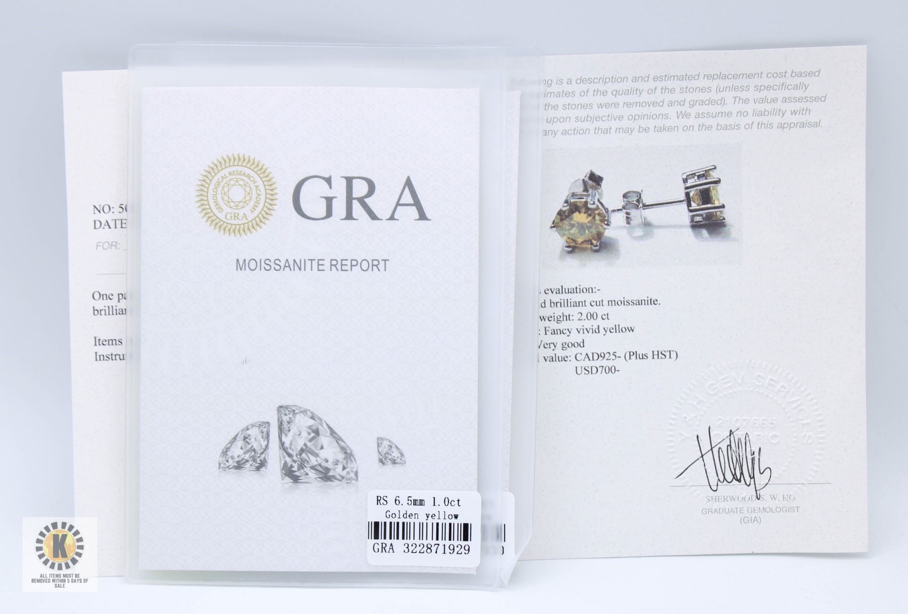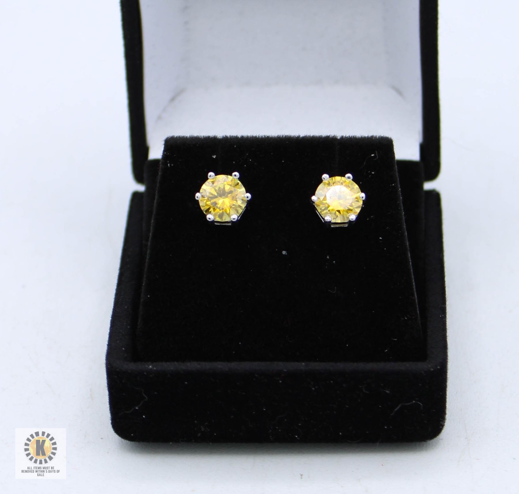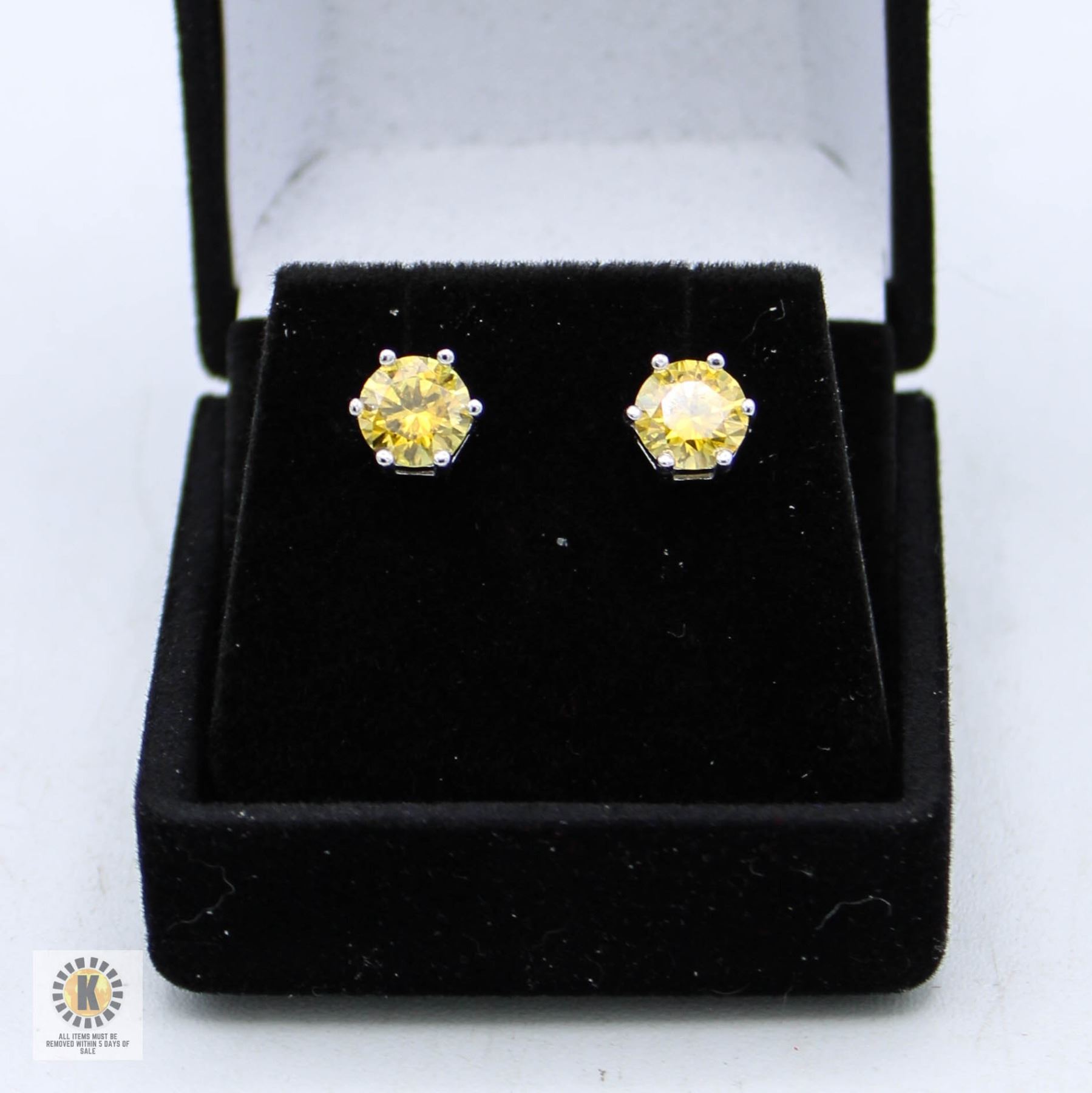 BRILLIANT CUT MOISSANITE STONES VVS FANCY VIVID YELLOW COLOR SET IN 925 SILVER EARRINGS RETAIL VALUE $925.00 **ALL ITEMS MUST BE REMOVED BY 5PM SATURDAY, MARCH 22ND 2025. ALL REMAINING ITEMS WILL BE SUBJECT TO A $6.00 PER DAY STORAGE CHARGE. ANY ITEMS REMAINING AFTER MONDAY, APRIL 7TH 2025 WILL BE CONSIDERED FORFEITED. NO REFUNDS WILL BE ISSUED FOR FORFEITED ITEMS. TO SCHEDULE A PICK UP APPOINTMENT CLICK HERE