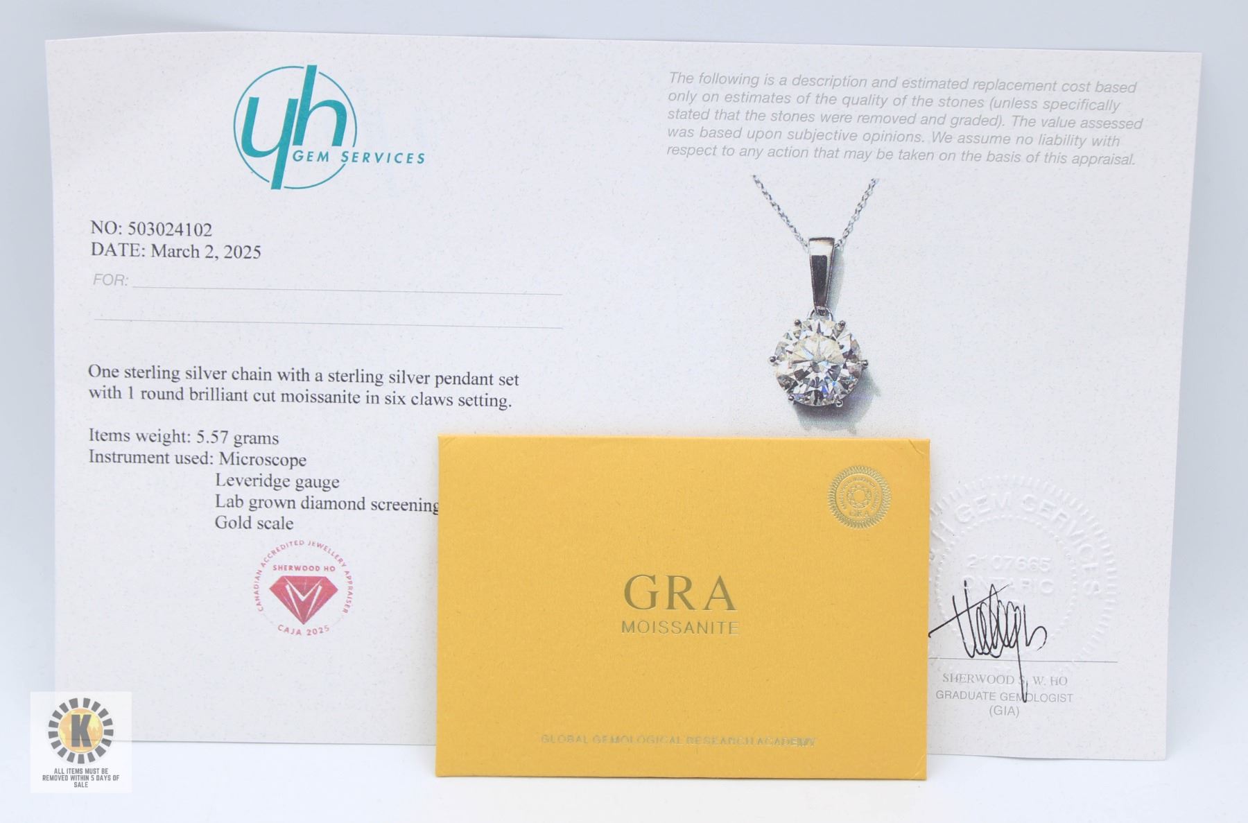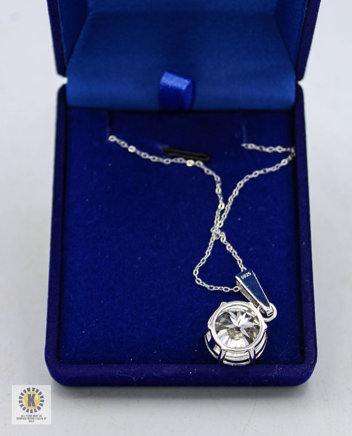 CUT MOISSANITE STONE VVS D COLOR SET IN 6 CLAW HEAD PENDANT SET IN 925 SILVER RETAIL VALUE $2,475.00 **ALL ITEMS MUST BE REMOVED BY 5PM SATURDAY, MARCH 22ND 2025. ALL REMAINING ITEMS WILL BE SUBJECT TO A $6.00 PER DAY STORAGE CHARGE. ANY ITEMS REMAINING AFTER MONDAY, APRIL 7TH 2025 WILL BE CONSIDERED FORFEITED. NO REFUNDS WILL BE ISSUED FOR FORFEITED ITEMS. TO SCHEDULE A PICK UP APPOINTMENT CLICK HERE