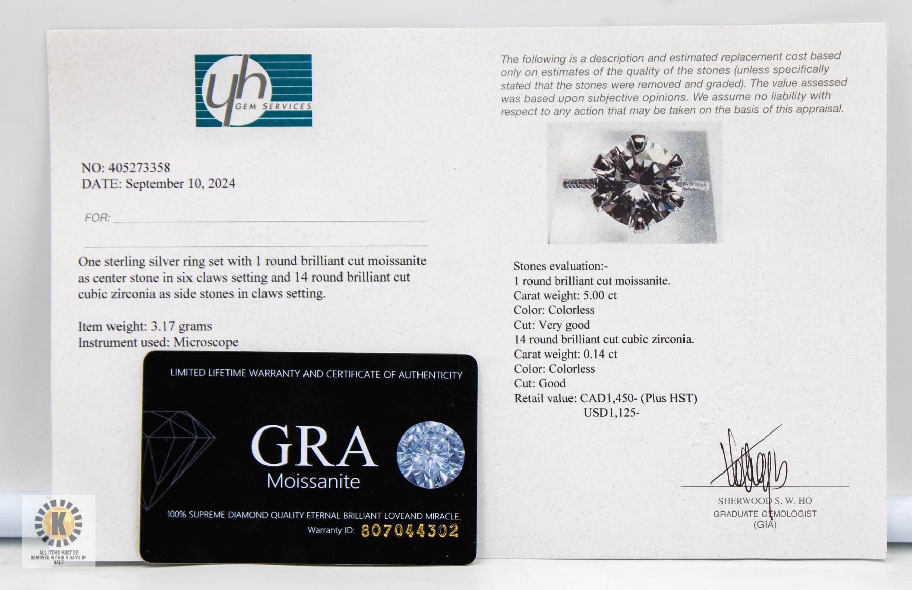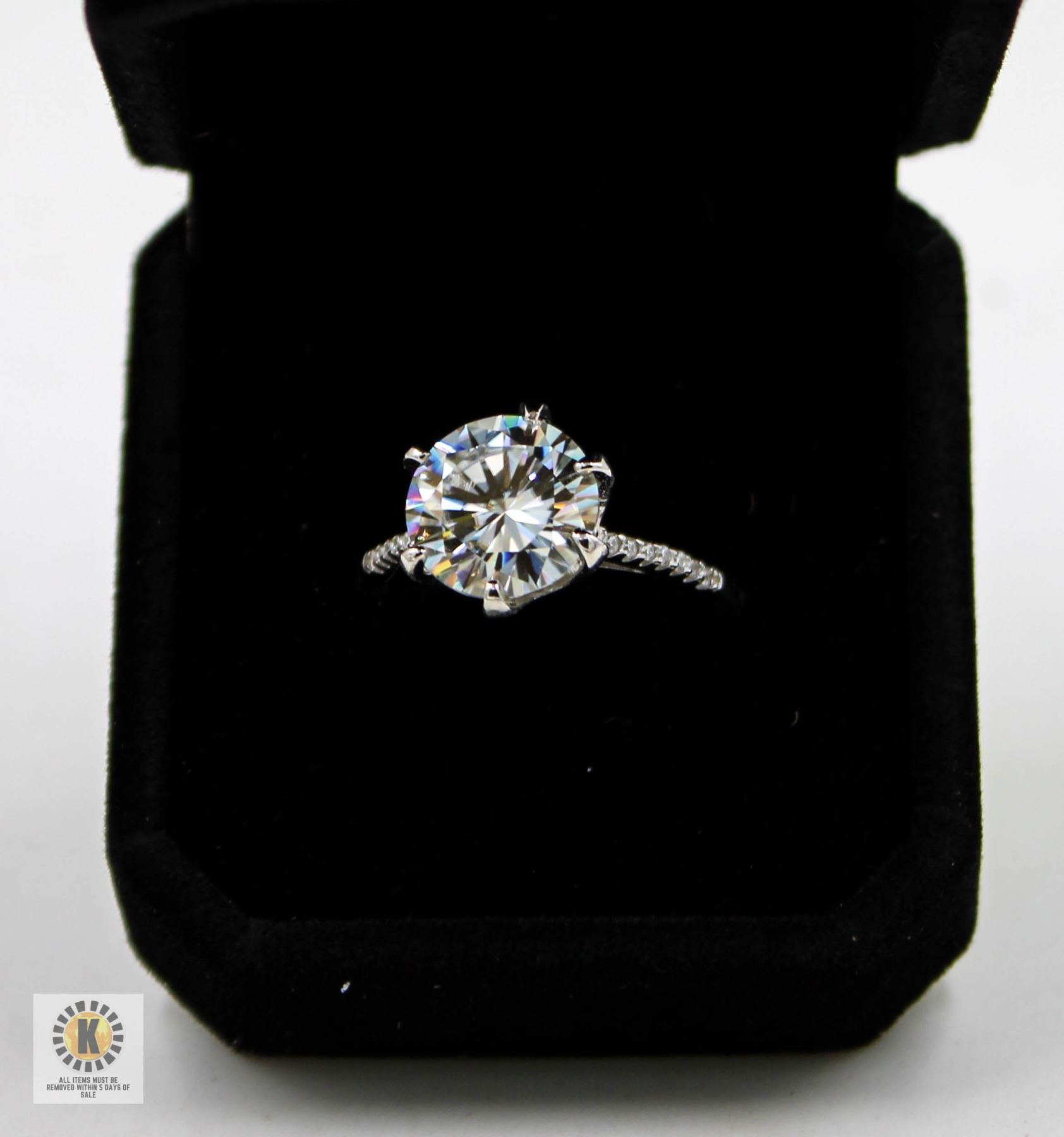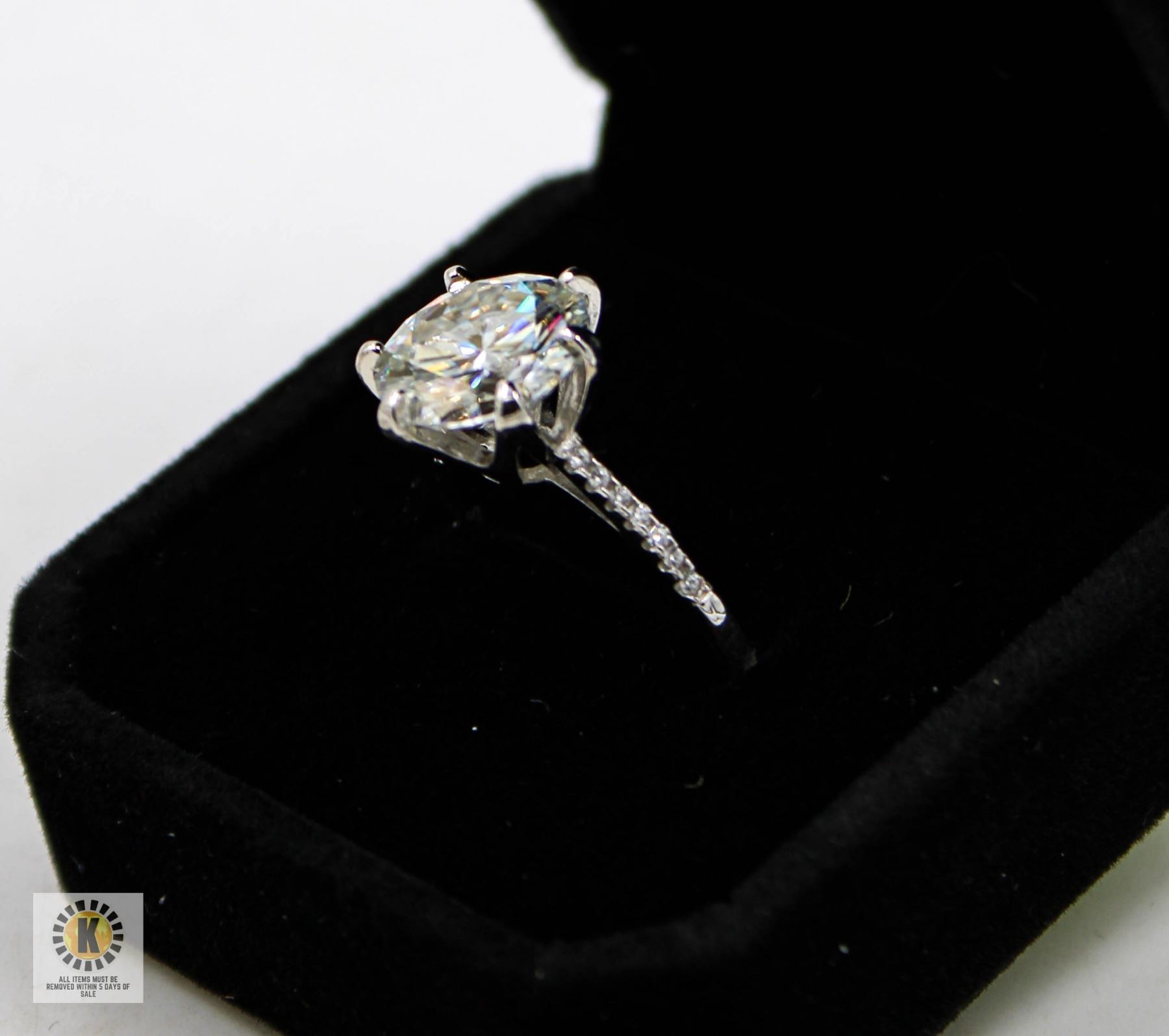 CUT MOISSANITE STONE VVS D COLOR SET WITH 14 ROUND BRILLIANT CUT CZ?S SET IN EITHER SHANK AND SET IN 925 SILVER RING SIZE 10 RETAIL VALUE $1,450.00 **ALL ITEMS MUST BE REMOVED BY 5PM SATURDAY, MARCH 29TH 2025. ALL REMAINING ITEMS WILL BE SUBJECT TO A $6.00 PER DAY STORAGE CHARGE. ANY ITEMS REMAINING AFTER MONDAY, APRIL 21ST 2025 WILL BE CONSIDERED FORFEITED. NO REFUNDS WILL BE ISSUED FOR FORFEITED ITEMS. TO SCHEDULE A PICK UP APPOINTMENT CLICK HERE