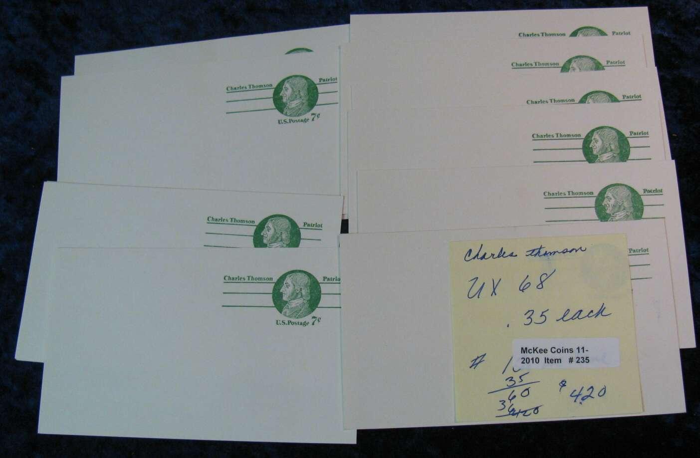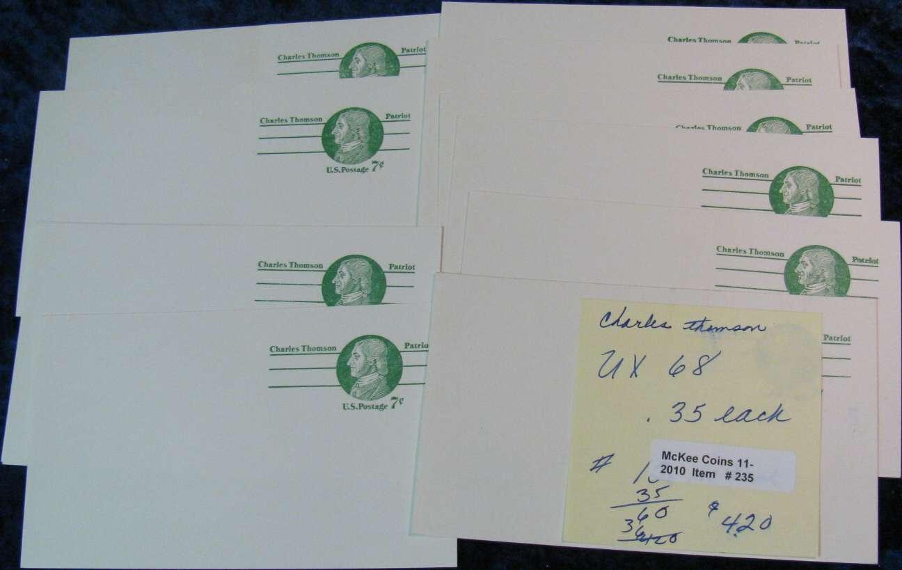 235. (12) UX 68 Charles Thomson Patriot Postal Cards. Catalog value of .35c each for a total of $4.20.
