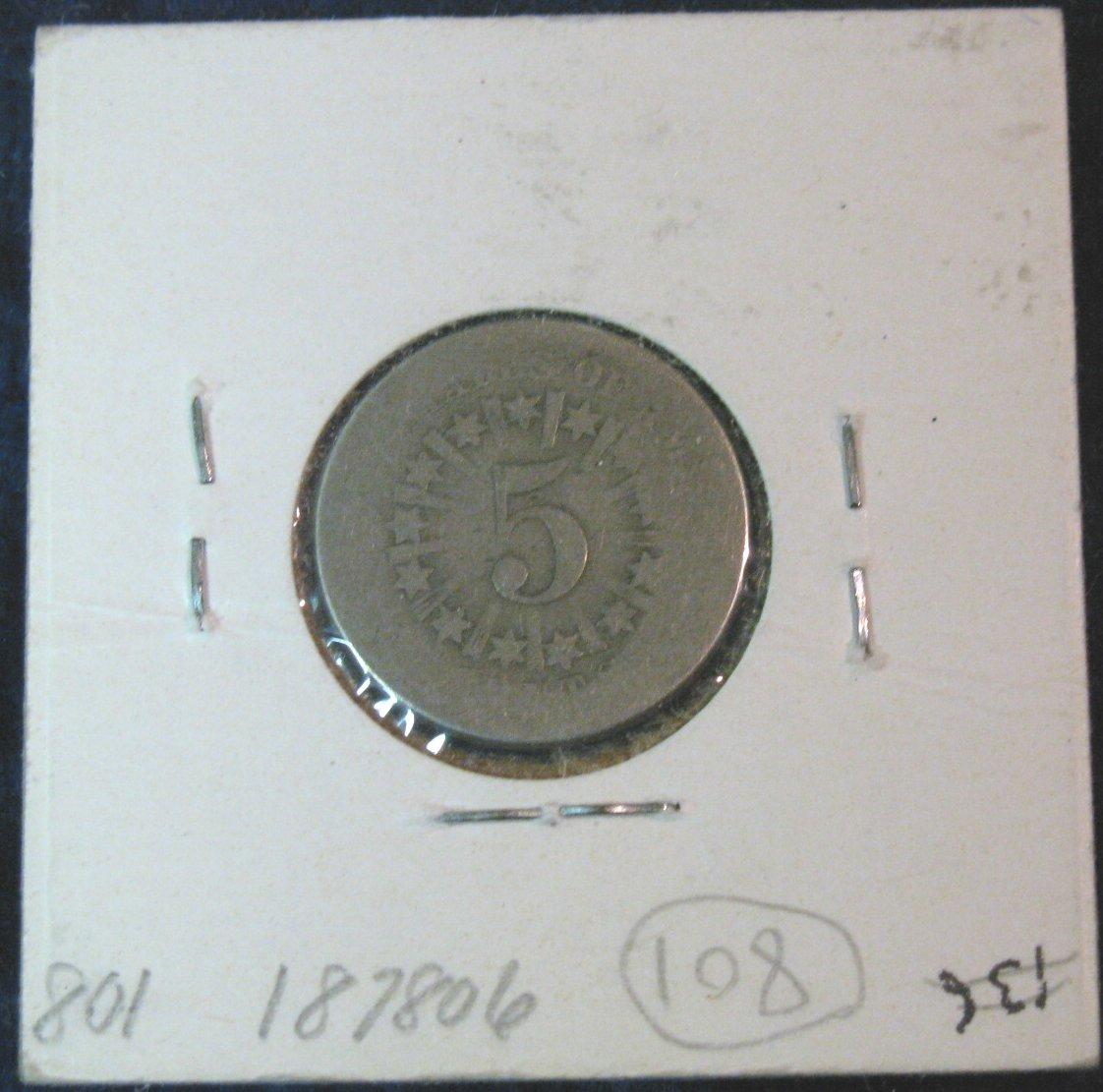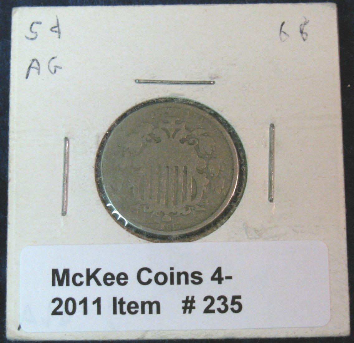 235. 1866 Shield Nickel. AG-3.