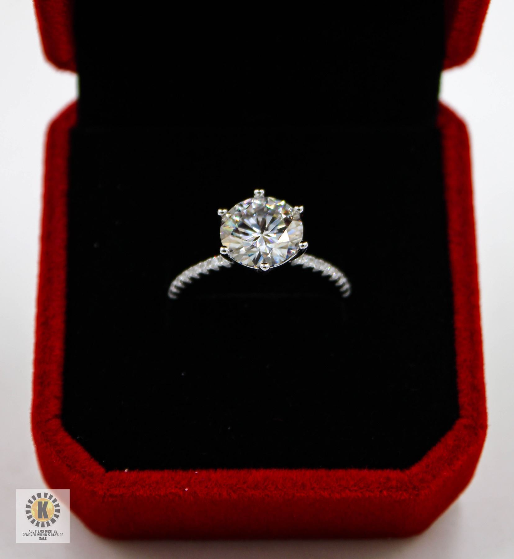 CUT MOISSANITE STONE VVS D COLOR WITH 18 ROUND BRILLIANT CUT CUBIC ZIRCONIA SET IN 925 SILVER RING SIZE 7 RETAIL VALUE $975.00 **ALL ITEMS MUST BE REMOVED BY 5PM SATURDAY, MARCH 29TH 2025. ALL REMAINING ITEMS WILL BE SUBJECT TO A $6.00 PER DAY STORAGE CHARGE. ANY ITEMS REMAINING AFTER MONDAY, APRIL 21ST 2025 WILL BE CONSIDERED FORFEITED. NO REFUNDS WILL BE ISSUED FOR FORFEITED ITEMS. TO SCHEDULE A PICK UP APPOINTMENT CLICK HERE