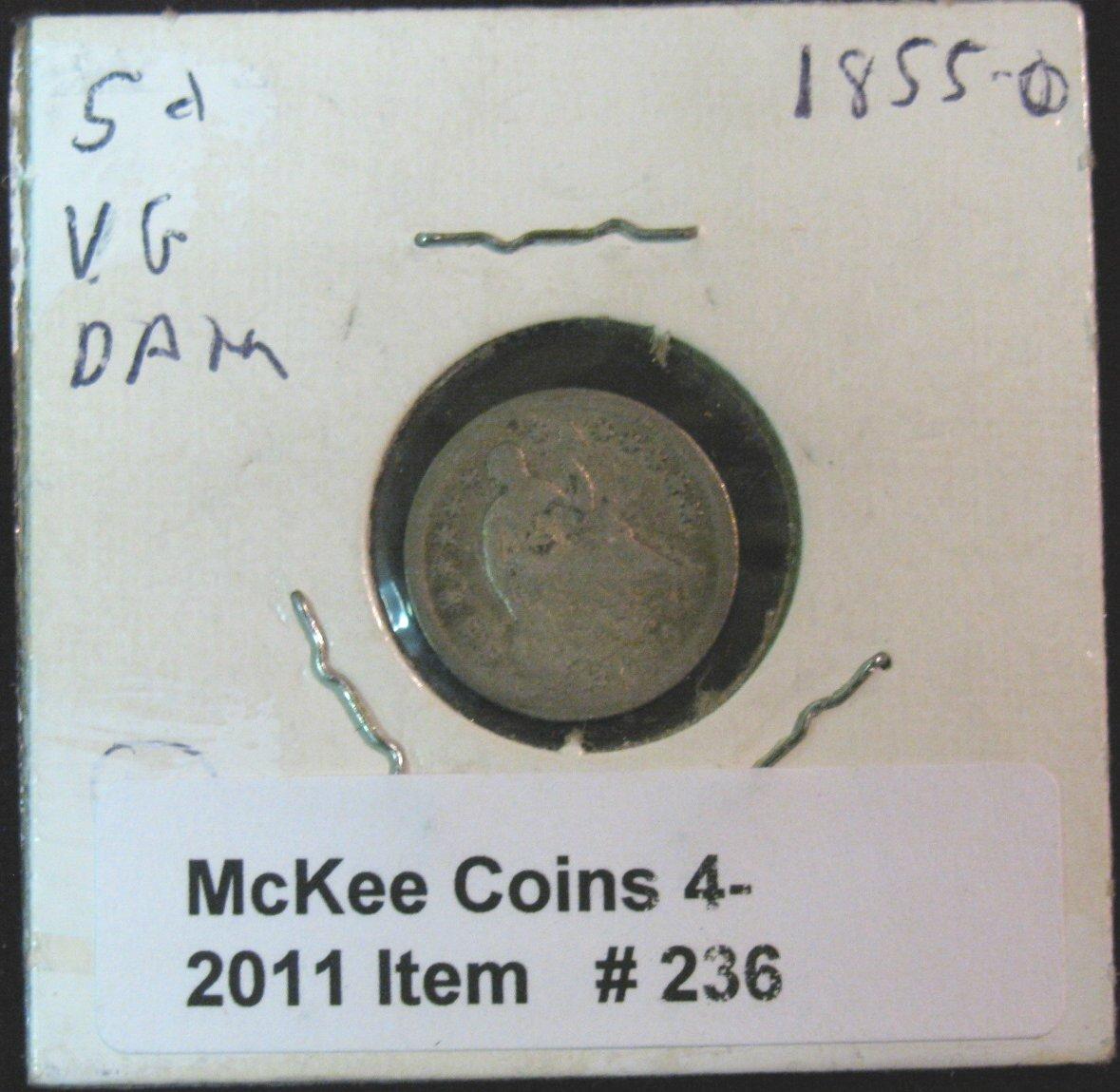 236. 1855 O Seated Liberty Half Dime. VG. Light damage.