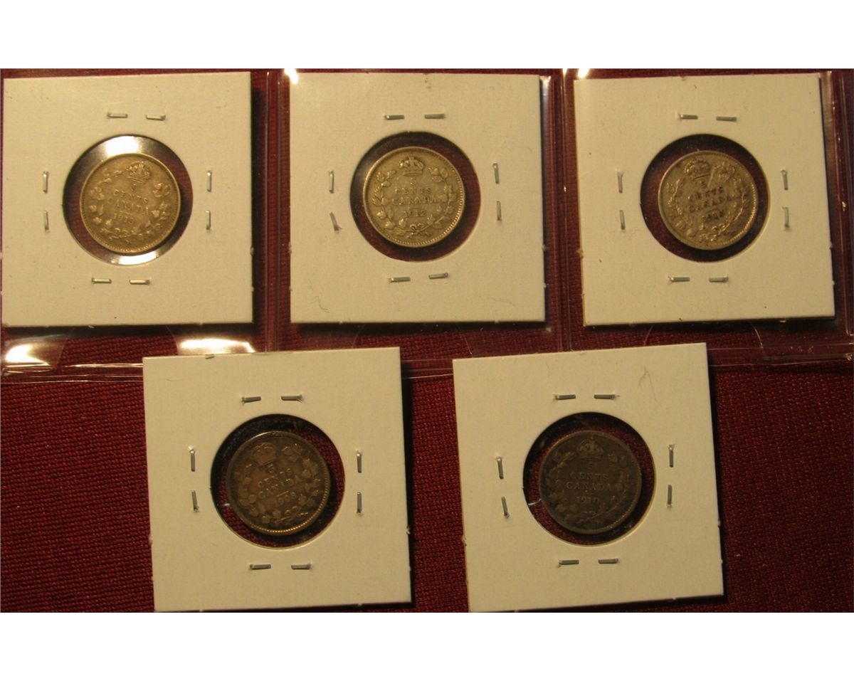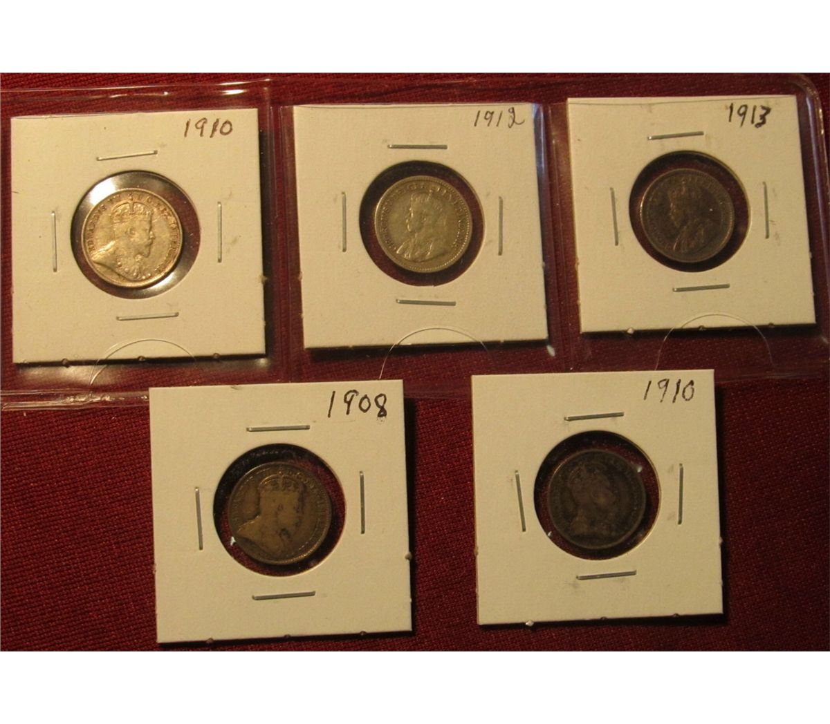 236. 1908, (2) 10, 12, & 13 Canada Five Cent Silvers. VG-VF.