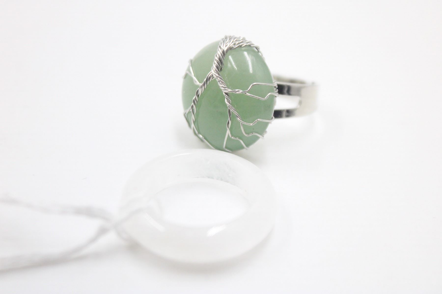 #237- NATURAL AVENTURINE & CLEAR QUARTZ RING 2PCS