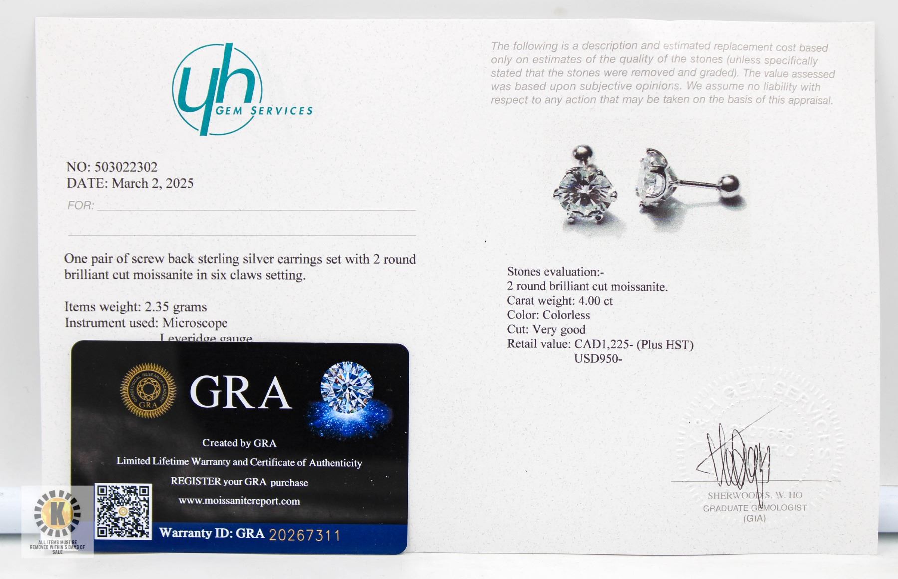 CUT MOISSANITE STONES VVS D COLOR SET IN 4 CLAW FILAGREE BASKET HEAD SET IN 925 SILVER EARRINGS WITH SCREW BACKS RETAIL VALUE $1,225.00 **ALL ITEMS MUST BE REMOVED BY 5PM SATURDAY, MARCH 29TH 2025. ALL REMAINING ITEMS WILL BE SUBJECT TO A $6.00 PER DAY STORAGE CHARGE. ANY ITEMS REMAINING AFTER MONDAY, APRIL 21ST 2025 WILL BE CONSIDERED FORFEITED. NO REFUNDS WILL BE ISSUED FOR FORFEITED ITEMS. TO SCHEDULE A PICK UP APPOINTMENT CLICK HERE