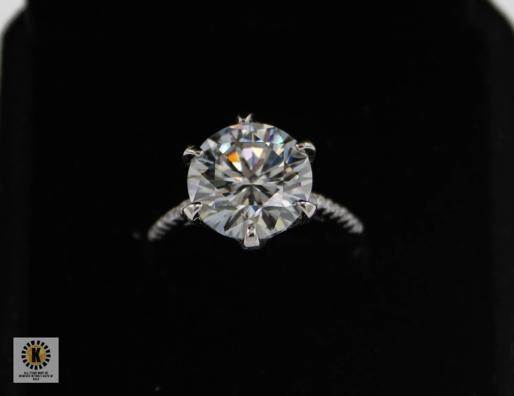 MOISSANITE STONE VVS D COLOR SET WITH 14 ROUND BRILLIANT CUT CZS SET IN EITHER SHANK AND SET IN 925 SILVER RING SIZE 7.25 RETAIL VALUE $1,450.00 **ALL ITEMS MUST BE REMOVED BY 5PM SATURDAY, APRIL 5TH 2025. ALL REMAINING ITEMS WILL BE SUBJECT TO A $6.00 PER DAY STORAGE CHARGE. ANY ITEMS REMAINING AFTER MONDAY, APRIL 21ST 2025 WILL BE CONSIDERED FORFEITED. NO REFUNDS WILL BE ISSUED FOR FORFEITED ITEMS. TO SCHEDULE A PICK UP APPOINTMENT CLICK HERE