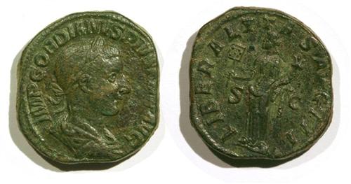 Gordian III 238-244 Sestertius. Reverse; Libertas gFine, #S2489.
